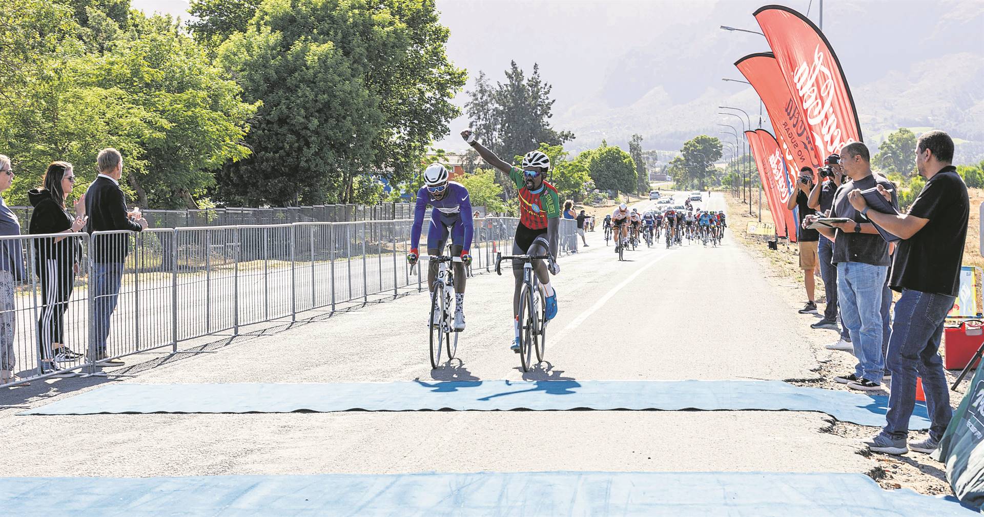 Die Afrika-paar het ná 105 km se aggressiewe jaagwerk 1,2 km voor die eindstreep in die hartjie van die Paarl van die bondel af weggebreek.