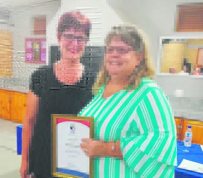 Die ATKV-gesinstak van Wellington het by sy jaarvergadering ’n prys van uitmuntende kliëntediens aan Annaleen Basson (links) oorhandig. Basson werk die afgelope 41 jaar by Absa Bank, voorheen Volkskas Bank. Sy het die prys ontvang omdat sy elke dag vriendelik is en help elke kliënt met ’n lied in haar hart. Saam met haar is Tharina Schweidler.