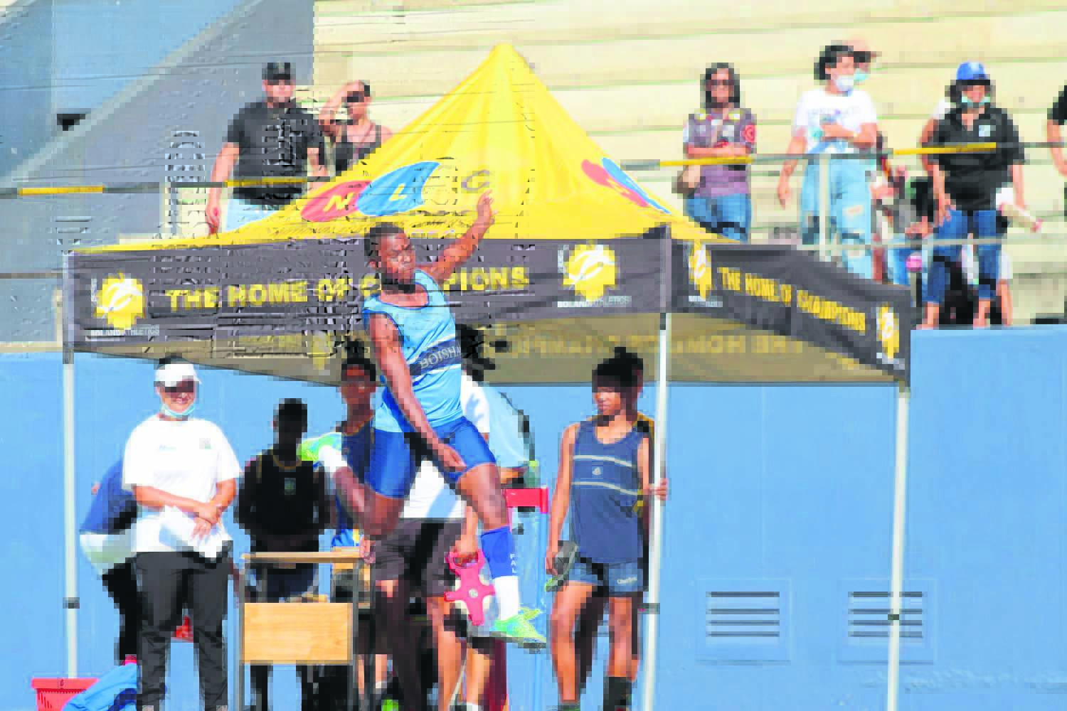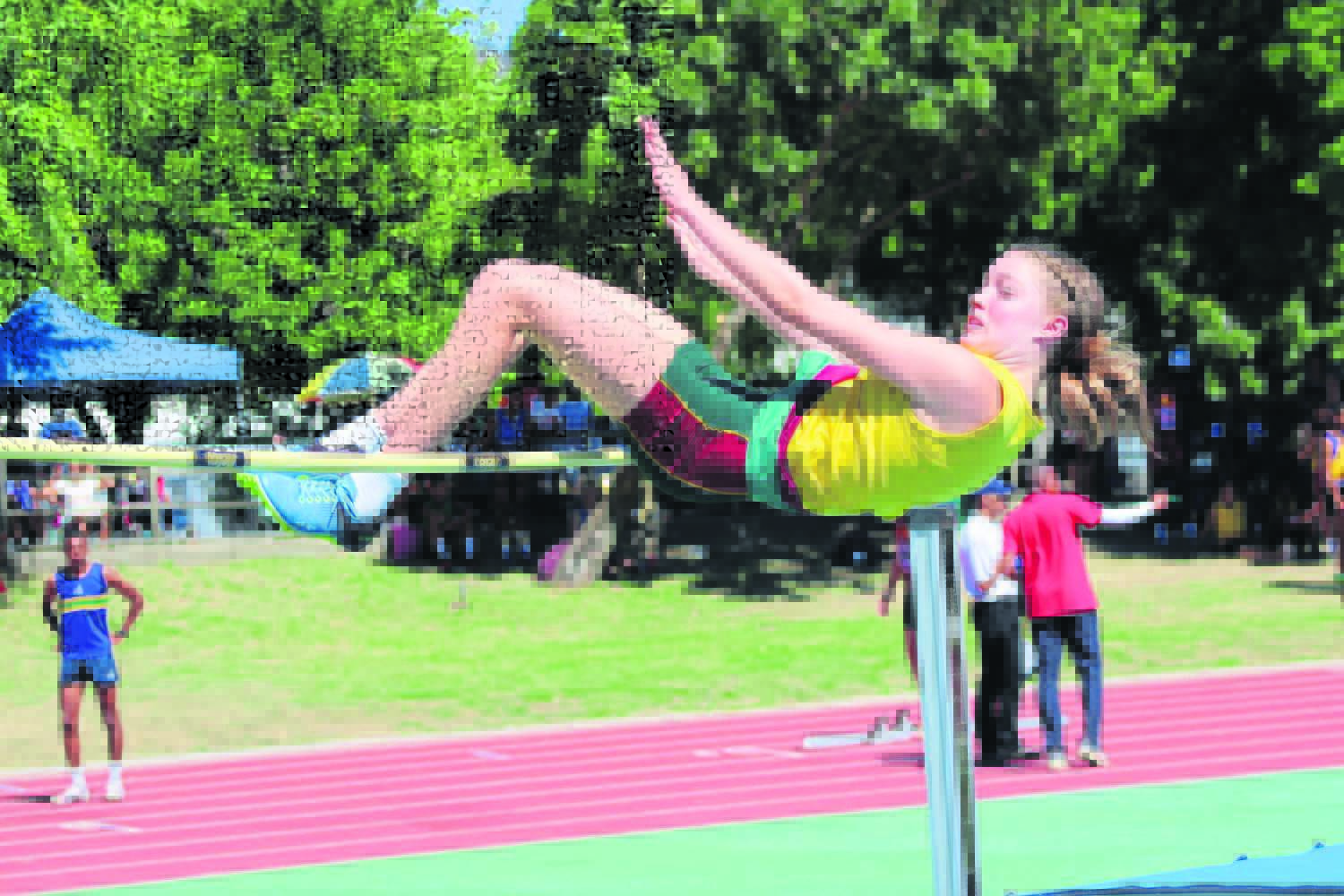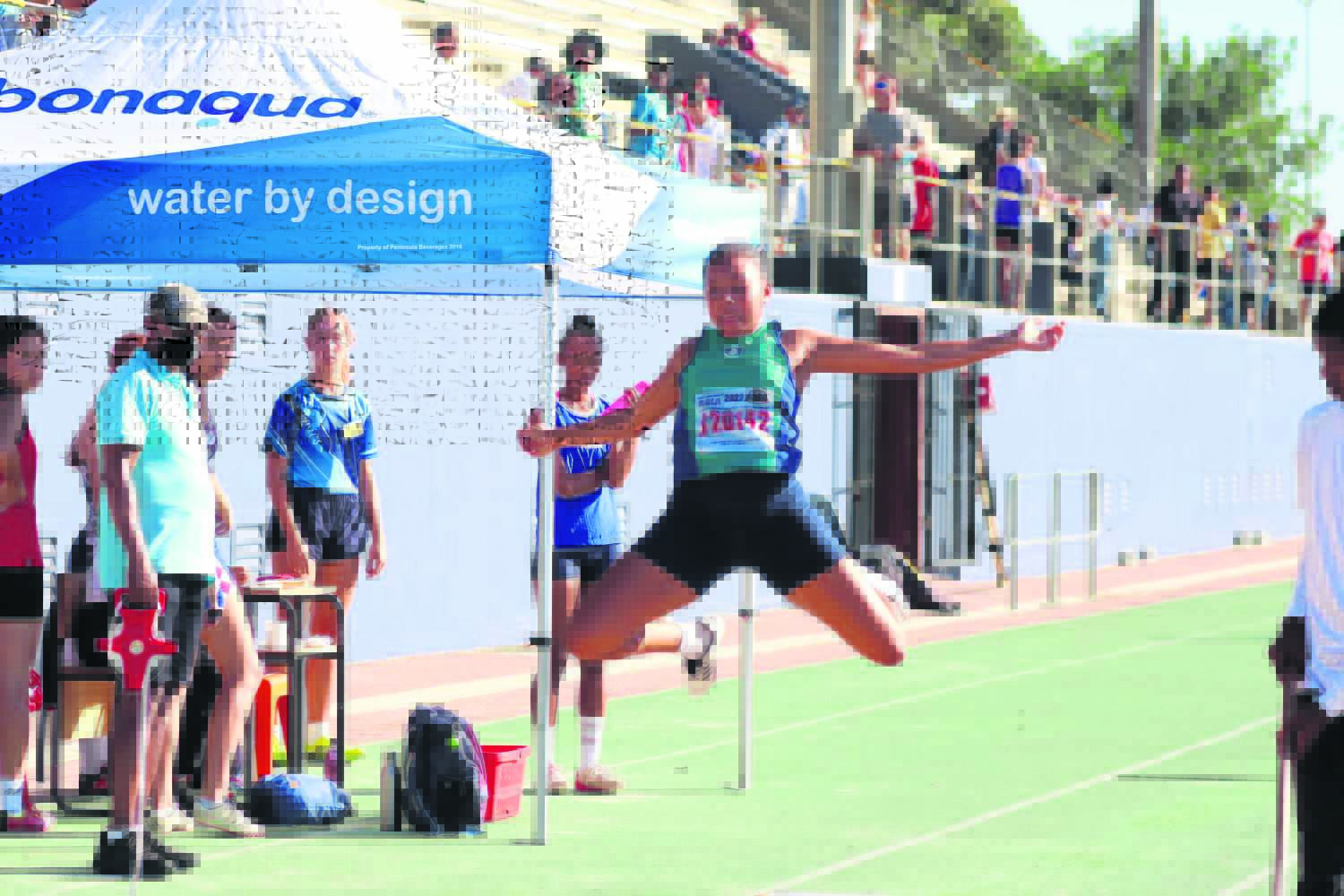 Jong atlete van die Drakenstein-vallei het die afgelope naweek weer hul staal gewys by die Boland se hoërskole-atletiekbyeenkoms in Dal Josafat-stadion. Bo steek Angie Pietersen van Hoërskool Wellington die eindstreep oor in die o.17-meisies se 100 m-naeloop.Foto’s: Ernest Kilowan