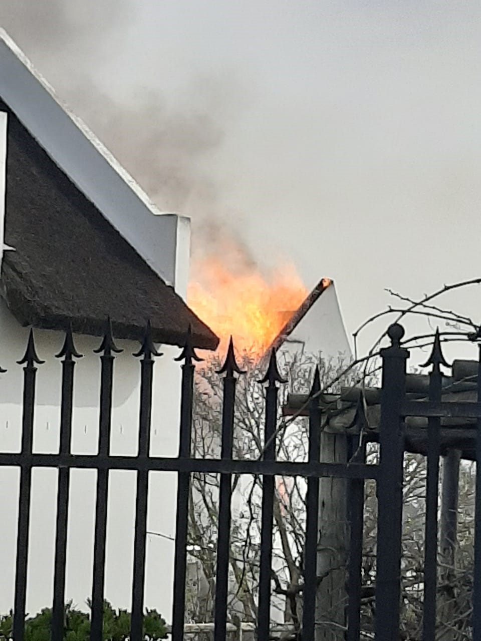 Die brand het vanmiddag by ’n woning op die landgoed begin en weens sterk winde vinnig versprei na naburige wonings.