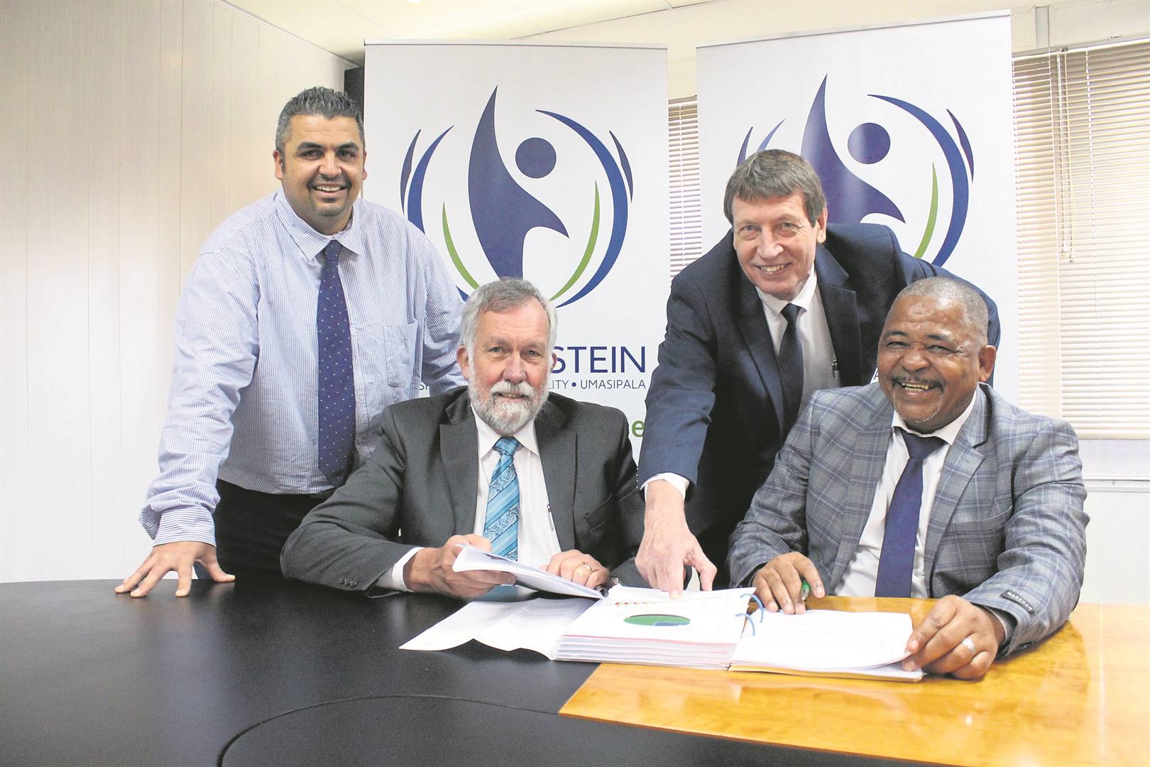The 2022-’23 budget was approved on Monday. From left are Bradley Brown (Chief Financial Officer), Gert Combrink (Deputy Mayor), Johan Leibbrandt (City Manager) and Conrad Poole (Executive Mayor of Drakenstein Municipality.)Photo: Liezl Davids