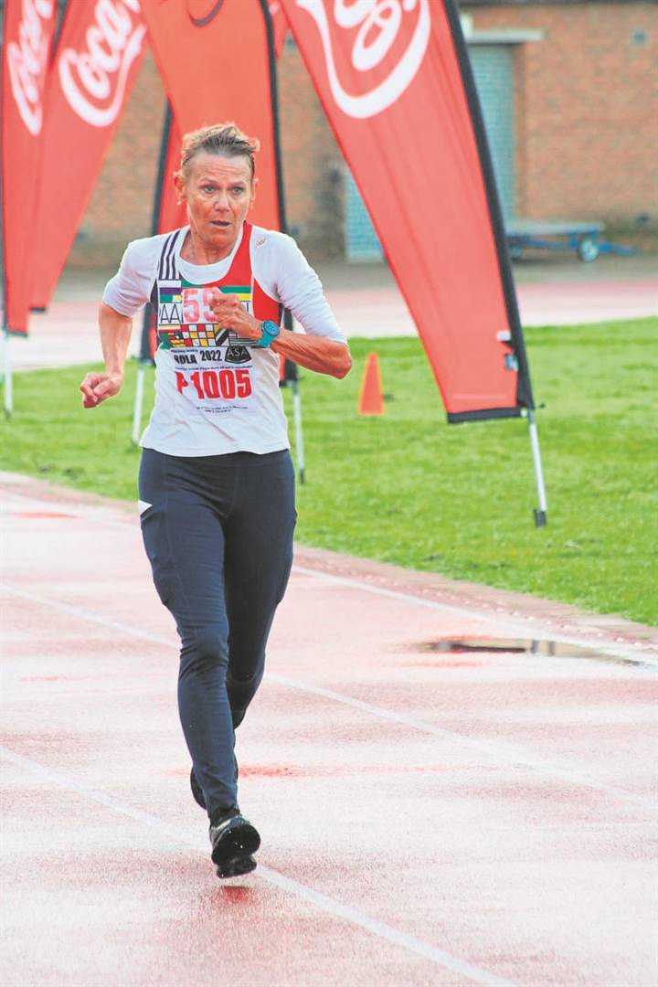 Carly Bredenkamp van die Paarl-atletiekklub is die 10 km-Boland-kampioen in die afdeling vir 55-jarige atlete. Bredenkamp het ook die algeheel tweede plek vir vroue behaal. Foto: Ernest Kilowan