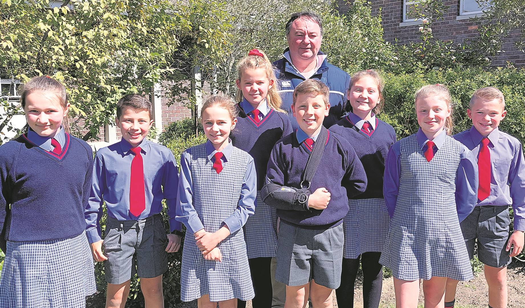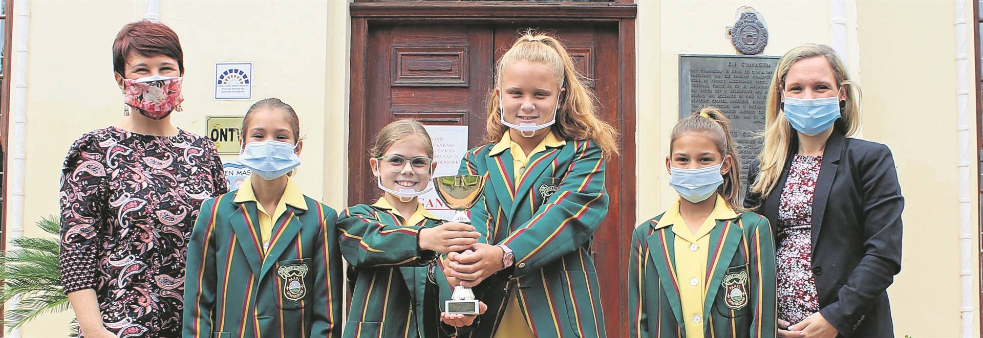 Leerders van Laerskool Courtrai het onlangs aan die ATKV-redenaarskompetisie deelgeneem. Die kompetisie is in ’n aanlyn formaat beslis. Van links is Jané Wiese, Jaco Erasmus, Anne Mocke, Isabella Spies, Freddie Thomlinson, Luca Yelverton, Lisa Schwabe en Louwrens Erasmus. Agter staan Jan Brand, die skoolhoof.
