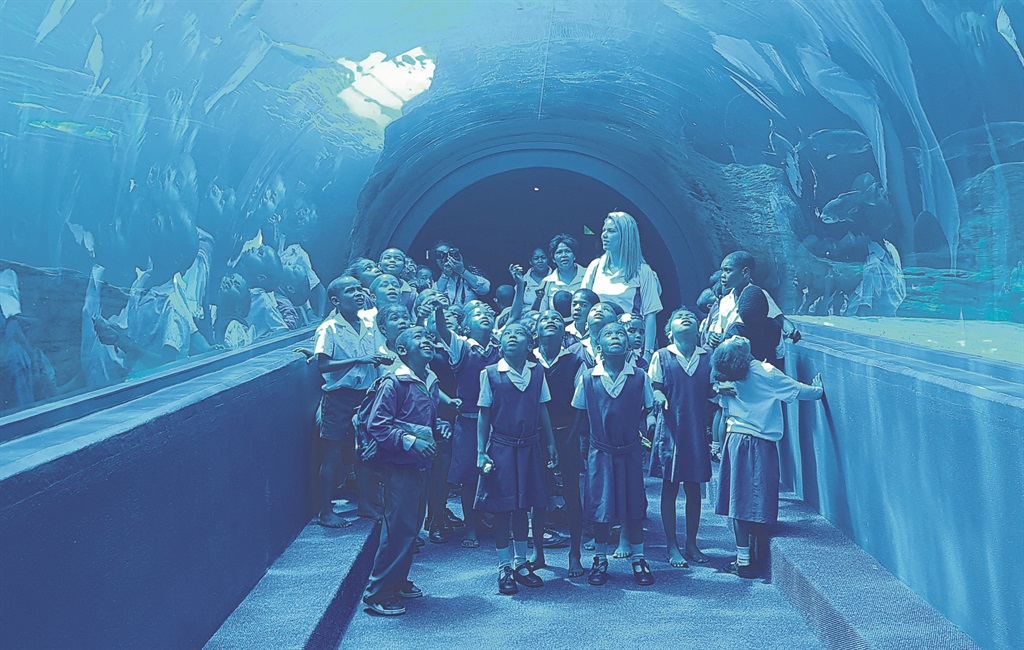 ’n Groepie leerders van Groenberg Primêre Skool vol verwondering in die Akwarium. Foto: Johan Nel