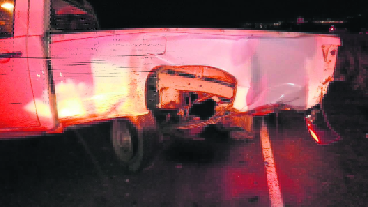 ’n Bakkie, een van die betrokke voertuie, het glo werkers vervoer, wat agterop gesit het.