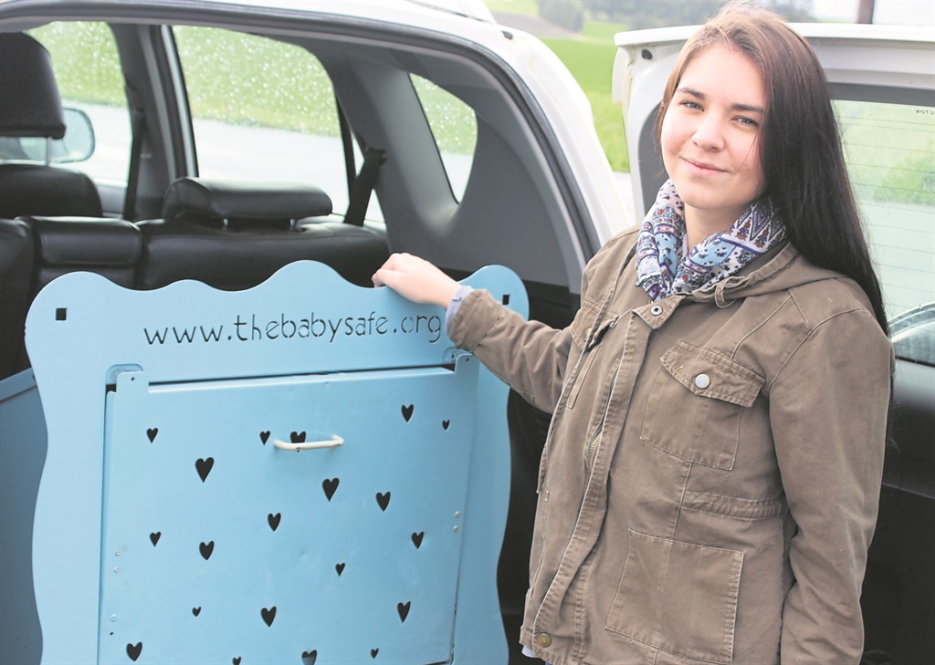 “Die baba-safe se deurtjie maak gemaklik na die straat se kant oop en die mamma kan haar baba veilig daarin plaas. Die deurtjie sluit onmiddellik sodra sy dit toemaak, ’n sensor is in die boks wat die baba sal ‘oplet’ en dan my of my man op ons fone in kennis sal stel,” verduidelik Marlet.