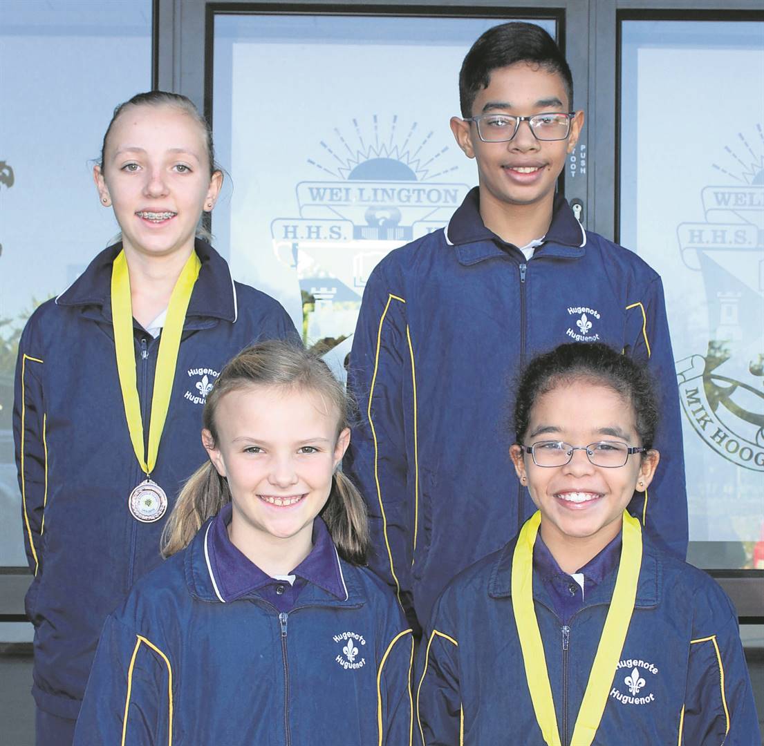 Hugenote Laerskool se skaakspelers het onlangs aan die laaste uitdunronde vir die Kaapse Wynland-skaakkampioenskap deelgeneem. Drie van die leerders is as medaljewenners aangewys en is ook opgeneem in die Kaapse Wynland-skaakspan. Agter is Imke Luyt (medaljewenner en lid van die Kaapse Wynlandspan) en Keenan Kirchner. Voor is Marlé Smit (medaljewenner en lid van die Kaapse Wynlandspan) en Tatum Kirchner (medaljewenner en lid van die Kaapse Wynlandspan).