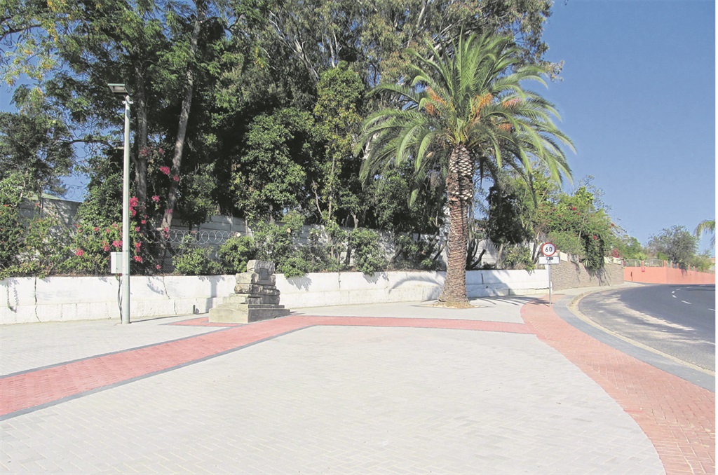 Op hierdie kaal, verlate stuk plaveisel op die hoek van Piet Retiefstraat en Blouvleiweg sal daar volgens diegene wat weet iewers in die nabye toekoms ’n pronkstuk van ’n fontein verrys – op die oomblik is dit bloot ’n monument ter ere van die uitmergelende droogte wat Wellington en omgewing getref het.Foto: Johan Nel