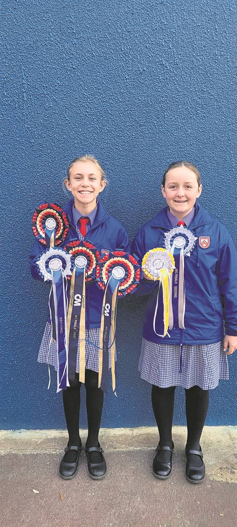 Emma Erasmus (left) and Summer Sowter (right), both Grade 6 learners at Courtrai Primary, recently represented the Sanesa Winelands Equestrian Team at the Western Cape finals. Emma finished in 1st place in both her 80 cm show jumping classes