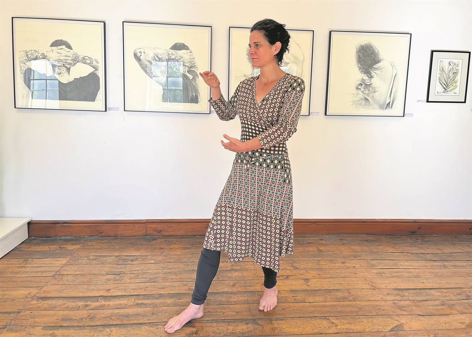 The hour-long classes on Tuesday evenings are offered with all the artwork up in the Breytenbach Gallery looking down at them. Alisa Farr, a qualified Qigong instructor, teaches these classes.