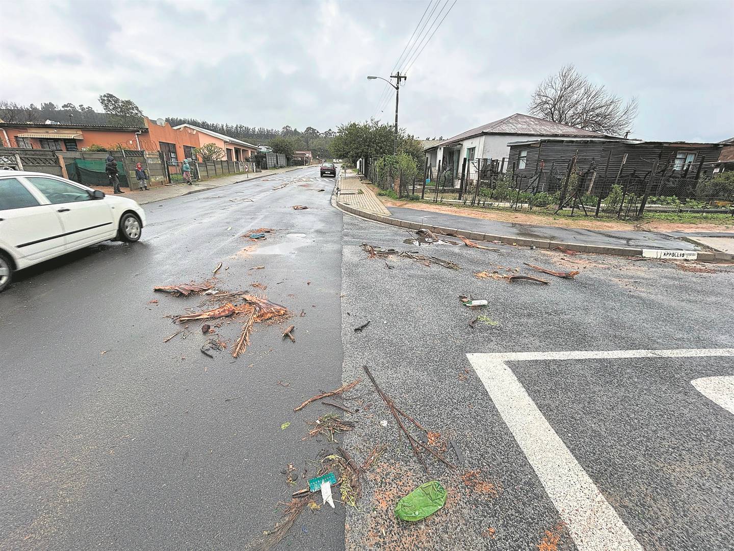 Stukke hout en ander voorwerpe was Woensdag, 10 Julie sigbaar in Newton se strate nadat vloedwater die woonbuurt getref het. Foto: Rasaad Adams