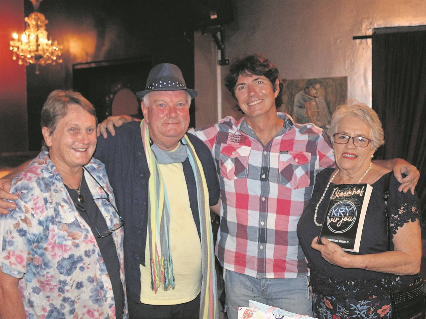Die gewilde Afrikaanse skrywer Francois Bloemhof (naasregs) was die gas by die gereelde bymekaarkoms van die Breytenbach Boekklub in Wellington. Dr. Amanda Swart (links), beskermpersoon van die boekklub, was die vraagsteller. Saam met hulle is Gerhard van Aardt, koördineerder van die Boekklub, en die Wellingtonner Martie Grobbelaar. Foto: Engela Duvenage