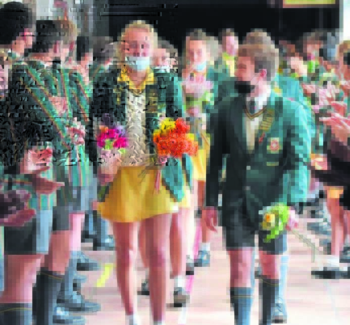 Die leerders van die Hoërskool Paarl Gimnasium het Vrydag op uitstapdag die matrieks van 2021 as helde vereer toe hulle vir oulaas die skoolperseel verlaat het. Die hoofmeisie, Corien Matthee en hoofseun, Wian du Preez, stap saam by die skool uit.