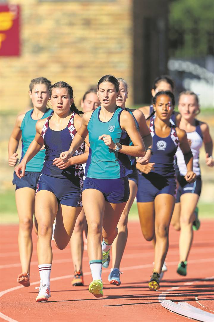 Charne Fourie van Girls’ High neem die leiding in die o.19-800 m.Foto: