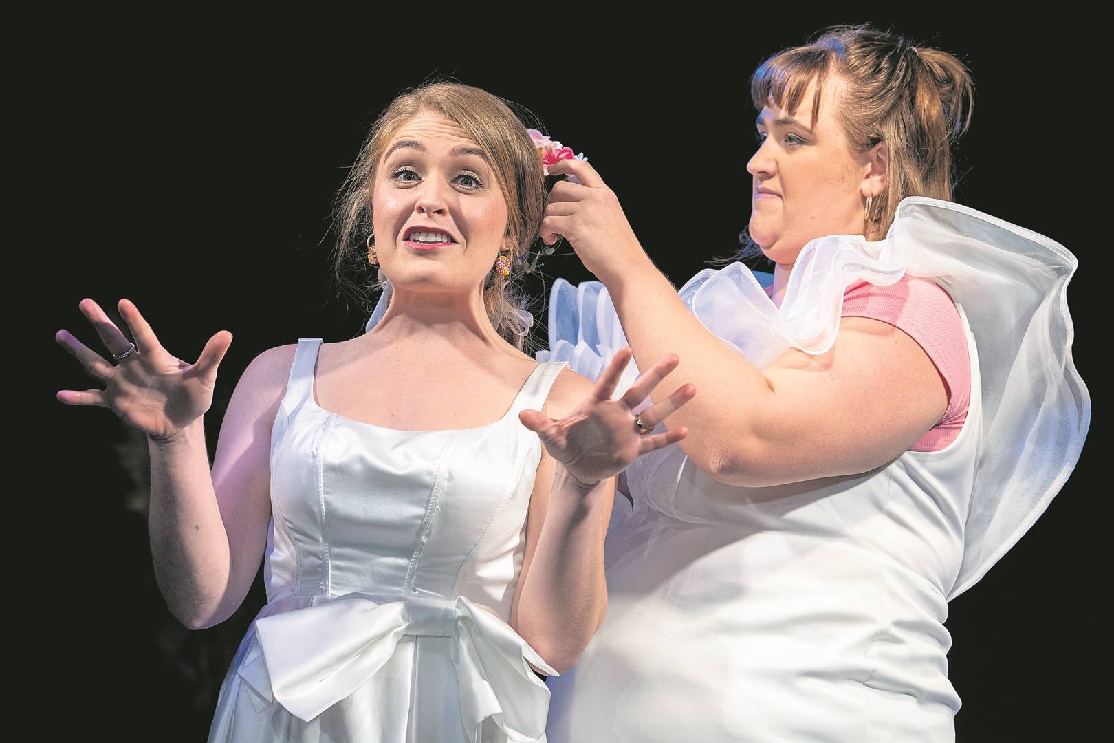 Koek en Tert staan albei in ’n spier­wit rok. Dit is skoonma’s, kombuis­tees, pampoenkoekies, blommerangskikkings en voorhuwelikse berading, maar nou is die lysies afgemerk en die lewenspad gekaart. Daar is twee trourokke en een bruidegom, en net een bruid stap môre in die kerkpaadjie af.