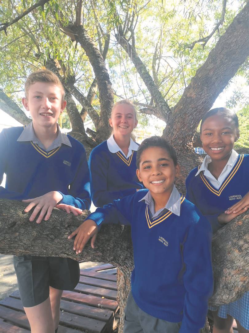 Vier leerders van die Laerskool Hugo Rust het onlangs aan die o.13- interprovinsiale Boland-hokkieproewetoernooi deelgeneem. Van links is Johan de Jonge, Marize Peek, Skyler Goodwin en Carla Jacobs. Johan is vir die Pinotage-suidspan gekies, Skyler vir die Shiraz-noordspan en Carla vir die IPT-span.