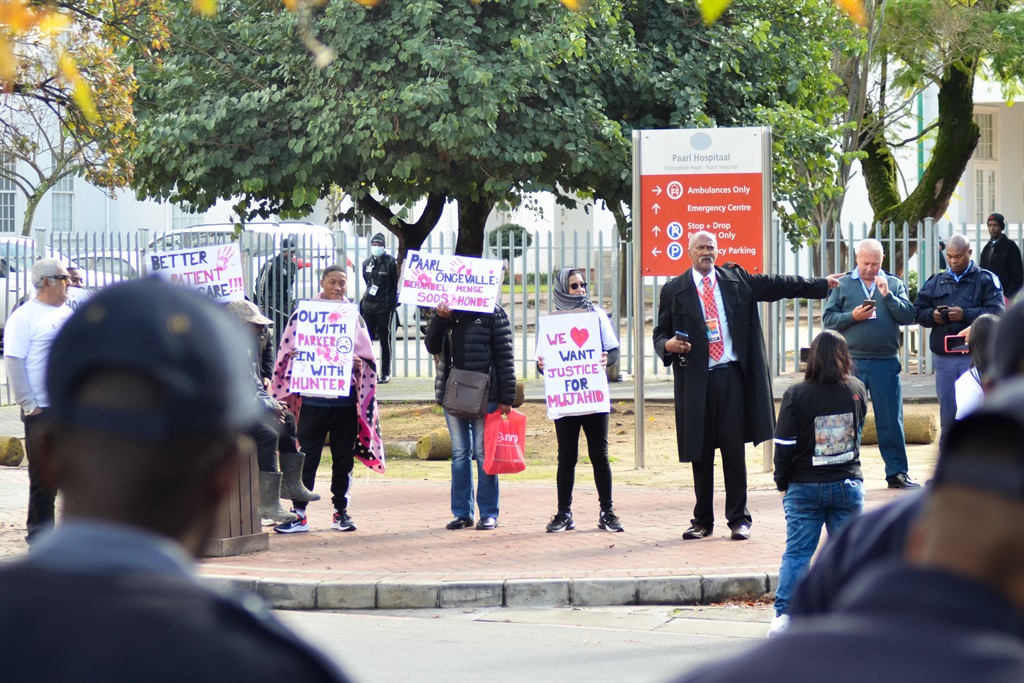 Inwoners betoog Donderdag, 4 Julie buite die Paarl-hospitaal. Foto: Rasaad Adams