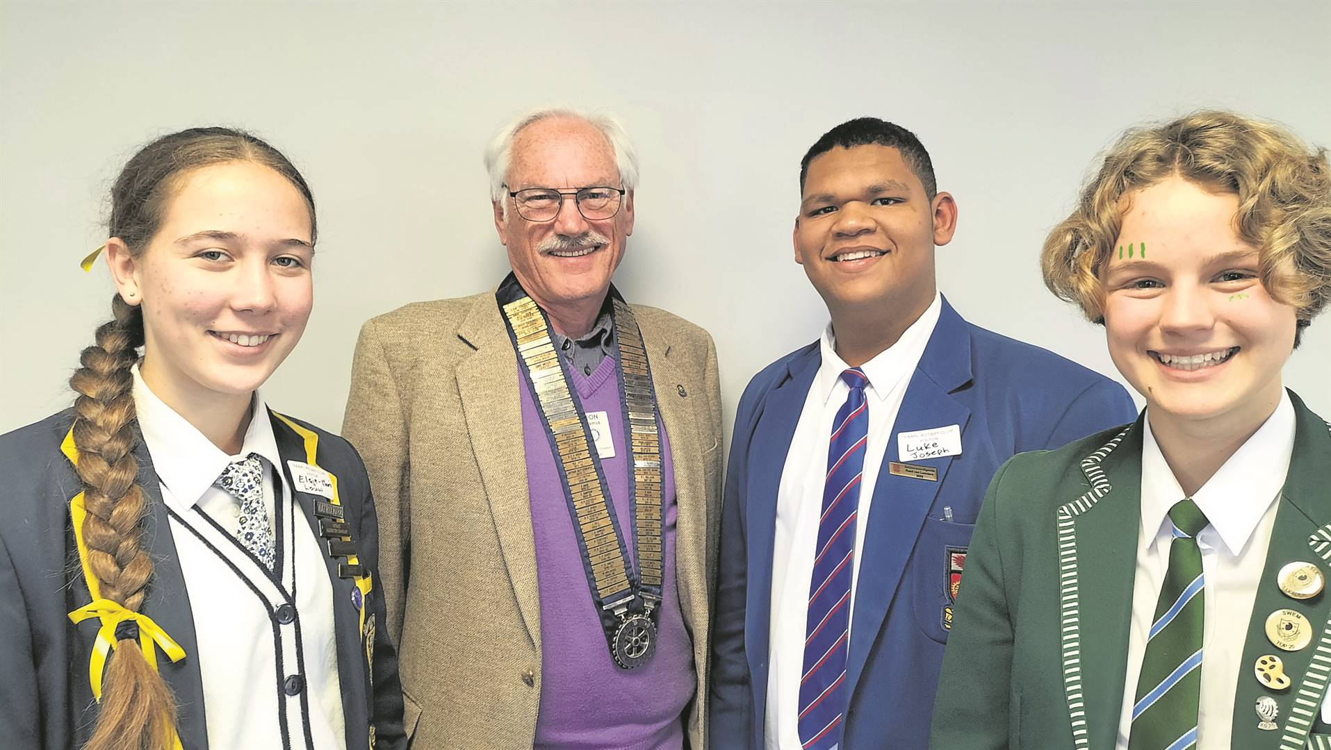 Isabella Groenewald (regs) van die Hoër Meisieskool Paarl is goedgekeur vir die Rotariërs se korttermynuitruilprogram. Sy sal in Desember na Boedapest reis vir ’n ses weke lange uitruilbesoek aan Hongarye waar sy by ’n Hongaarse gesin sal bly. Die gesin se dogter sal in ruil gedurende Junie 2023 die Paarl besoek. Hier is Isabella saam met Deon Erasmus (die Rotariërs se president), Luke Joseph (Hoërskool Labori) en Elsje-Mari Louw (Hoërskool La Rochelle) wat tydens die skoolvakansie Rotary se Adventure into Citizenship-program in Kaapstad bygewoon het. Die week lange program het besoeke aan die hooggeregshof, provinsiale parlement, Distrik Ses-museum en die Kirstenbosch-tuine ingesluit.