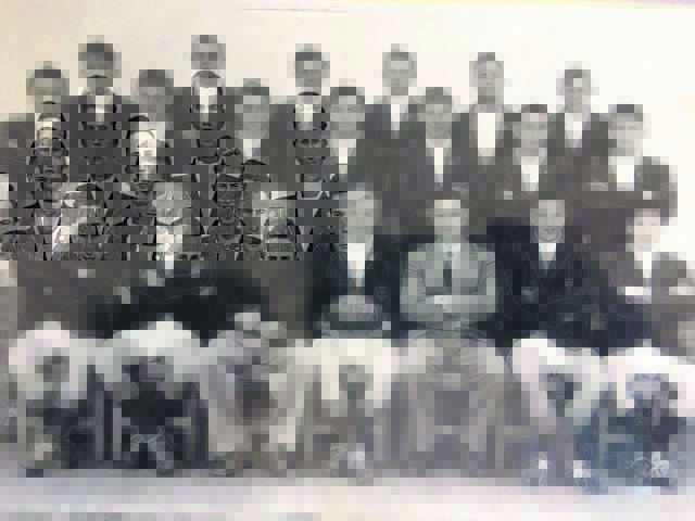 Dawie de Villiers (middel voor) was op skool reeds kaptein van die eerste rugbyspan van die Hoërskool Bellville. In die middel, derde van links, is Fritz Joubert, die skrywer van hierdie huldeblyk.