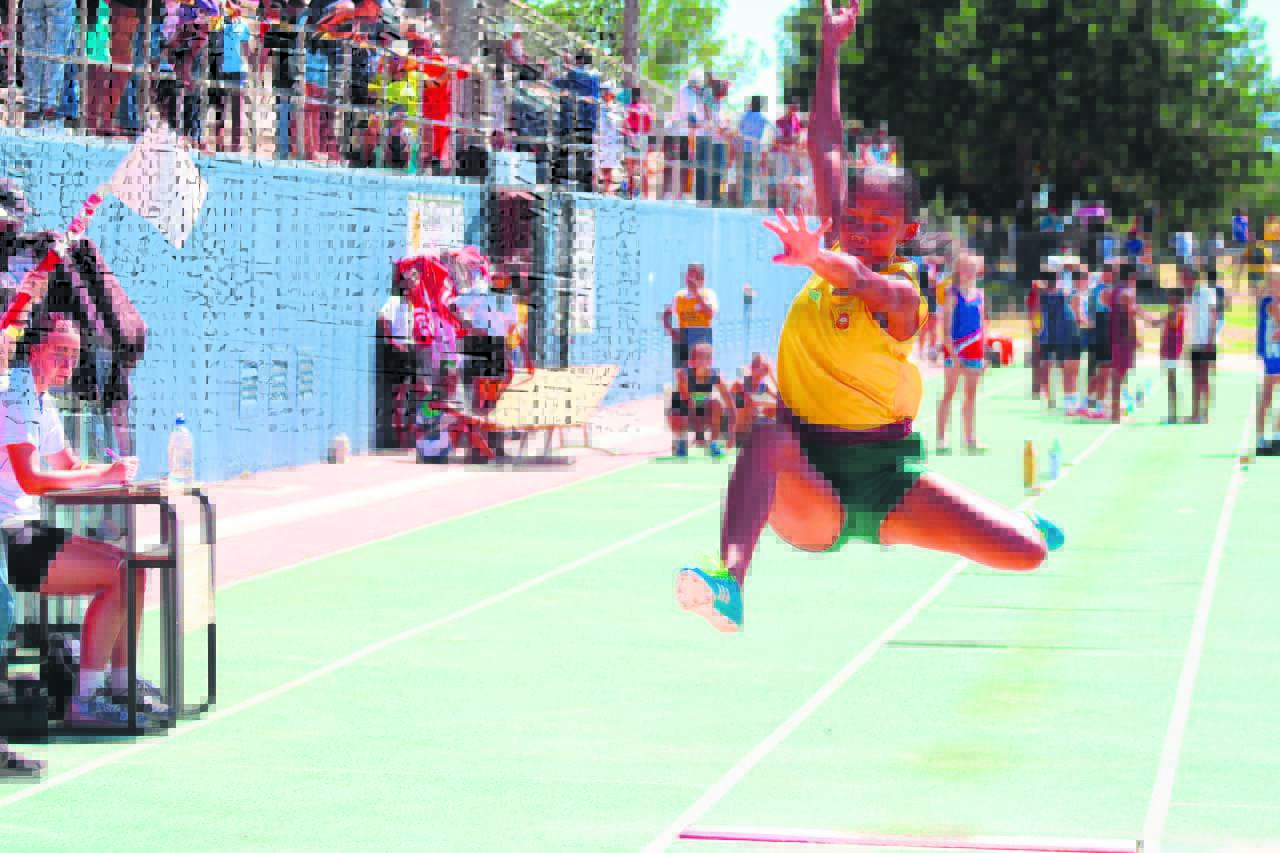 Andrea Heugh van die Laerskool Gimnasium beïndruk met ’n goeie sprong in die o.13-verspring. Foto’s: Ernest Killowanoto’s: Ernest KilowaFoto’s: Ernest KilowanFoto: