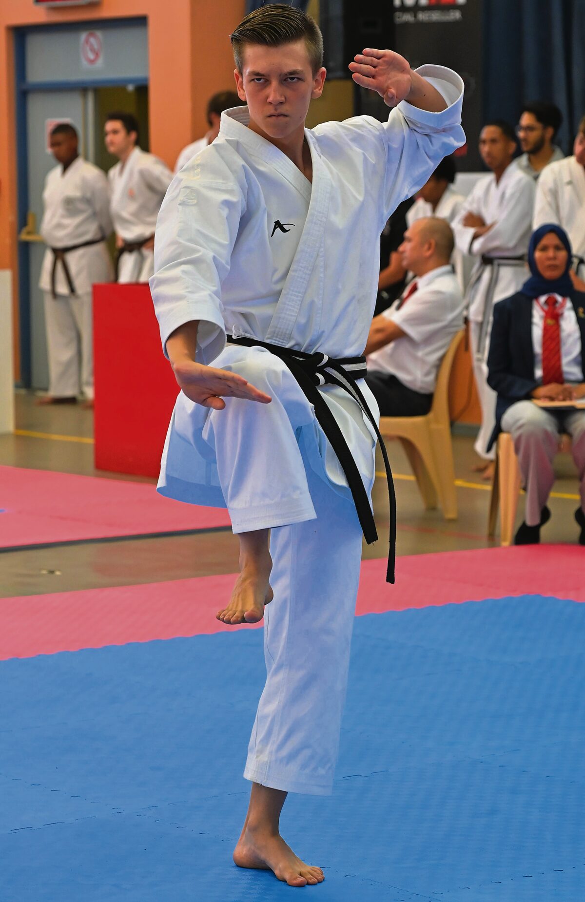 Sebastian Sonnkeus (15) konsentreer terwyl hy ‘n Kata uitvoer. Foto: Verskaf