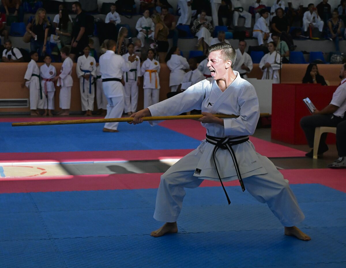 Hier het Sebastian een goue en een silwermedjale verower in onderskeidelik die kata-afdeling in die groep vir 14- tot 15-jariges, en in kobudo met ‘n kort wapen, die sai (‘n soort vurk).