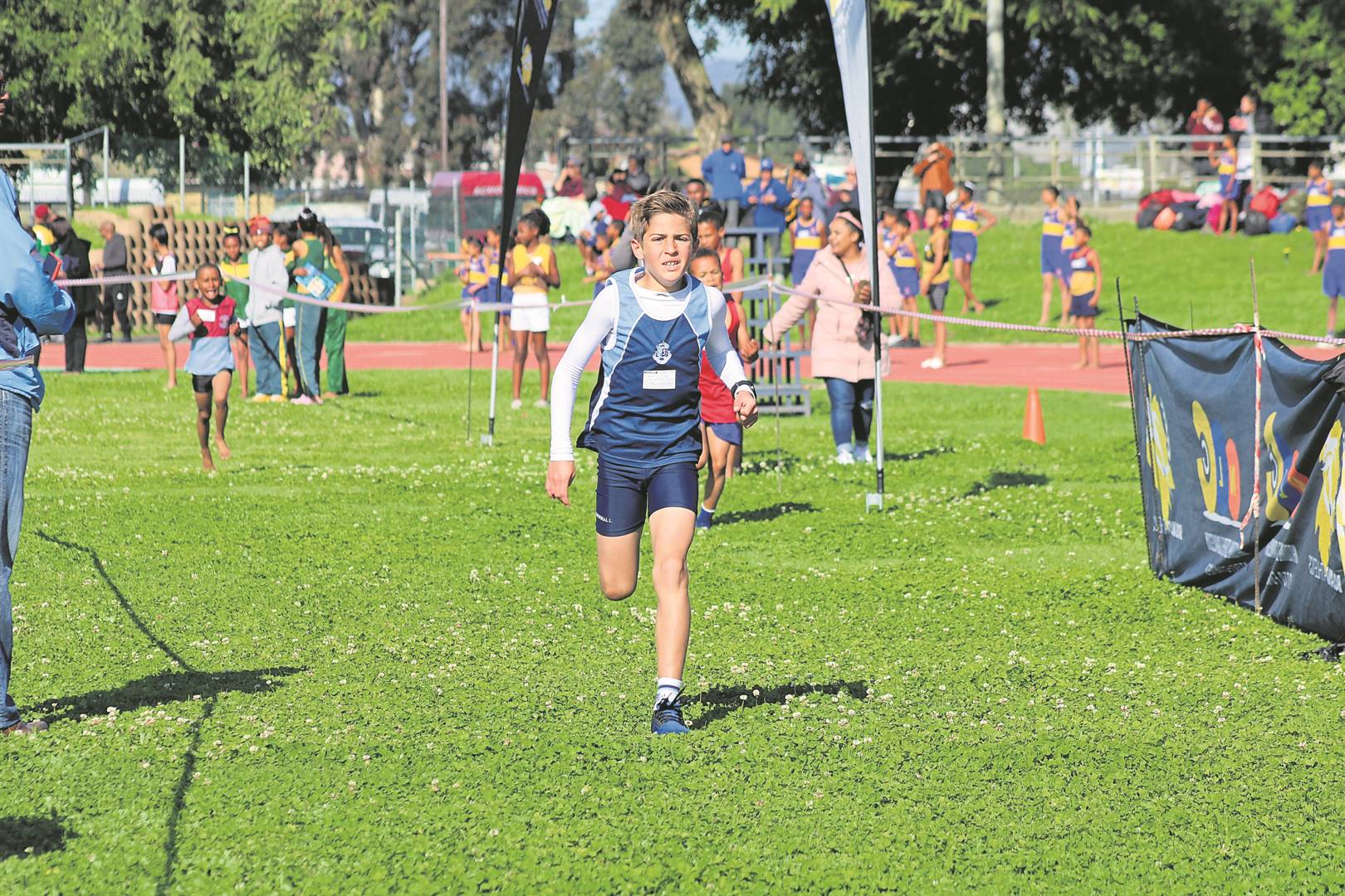 Liam Kriek, ’n leerder aan die Paarl Primêre Seunskool het die afgelope naweek sy wedloop (o.9) tydens die Boland-landloopkampioenskap op Dal Josafat-stadion gewen. Foto: Ernest Kilowan
