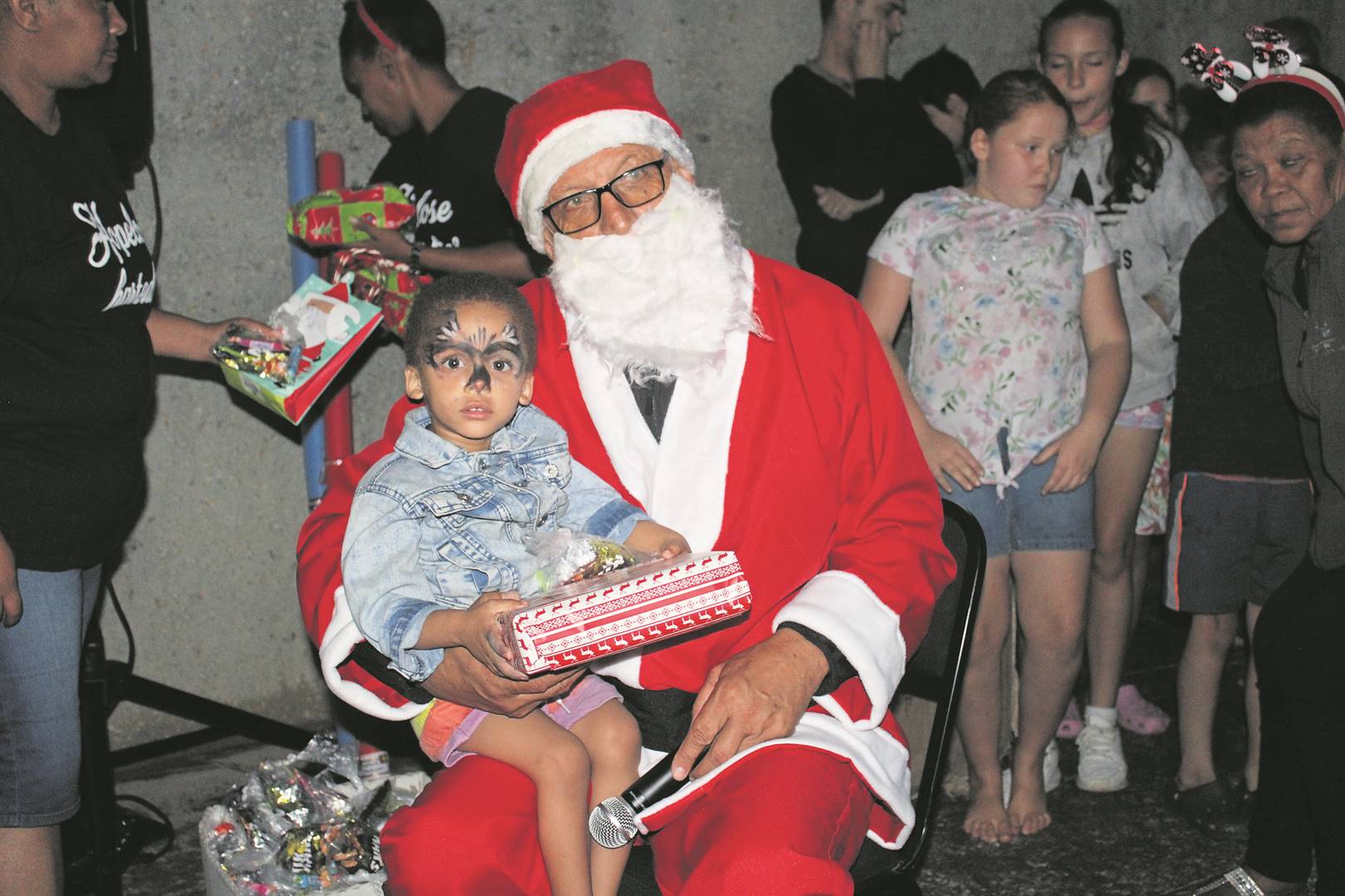Soos dit ’n goeie tradisie betaam, het Kersvader wéér besluit om Saterdag (14 Desember) geskenke uit te deel tydens die gewilde Desember-volmaanpiekniek by die ikoniese Afrikaanse Taalmonument en -museum (ATM). Die kinders is ook bederf met ’n verskeidenheid speletjies en gesigverf. Links sit ’n baie opgewonde Cee-Jay Hartebeest-Louw op Kersvader se skoot nadat hy sy geskenk ontvang het.Foto: Chantélle Hartebeest