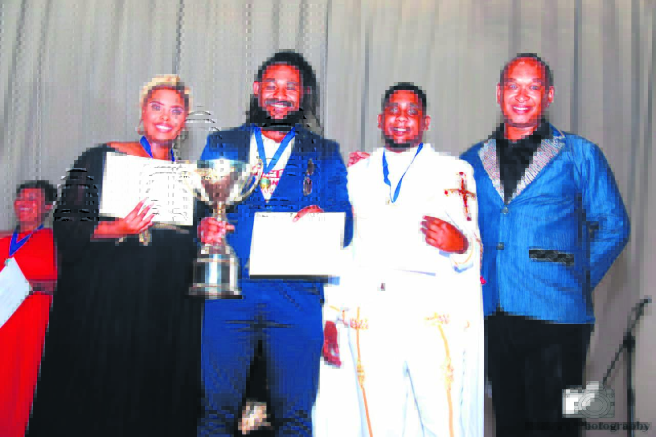 Global Spotlight Talent Search het die afgelope naweek hul jaarlikse gala-aand in die Paarl-stadsaal gehou. Vanjaar se algehele wenner is die sanger Tyrone Langley (tweede van links). Saam met hom is (van links) die sangeres Berene Appolis (derde), die sanger Carl Hendricks (naaswenner) en Sydwell Beziek (sanger en besturende direkteur van die kompetisie).