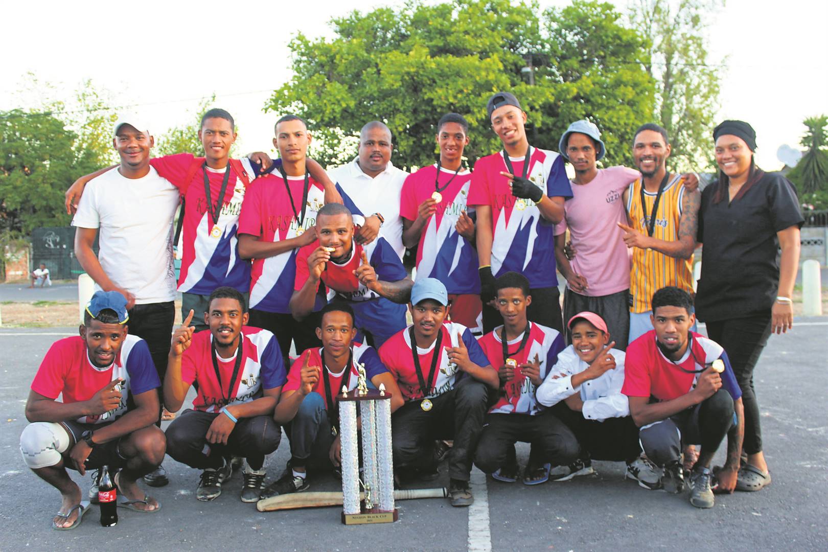 United Kings van Harperstraat, Paarl-Oos, het hierdie naweek teen Youngstas van Chicago te staan gekom in die Neugon Black-landjiekrieketbeker en as kampioenspan weggestap. UK’s het 152/4 in sy toegelate 20 beurte aangeteken en Youngstas was op 148 almal uit. Die wenspan is agter, Marewaan Jacobs, Ferose May, Craig Nardus, Aljero Seconds, Jouzay Cupido, Zieyaad Jacobs, Fadley Jacobs, Cheslin Hendricks en Sadeeqah Basadien Voor is: Akeem Minnaar, Jadon May, Jiovandry Gouws, Devon Ruiters, Enslin Moses, Herchelle Smith, Christo de Web en Ainsley Moses.