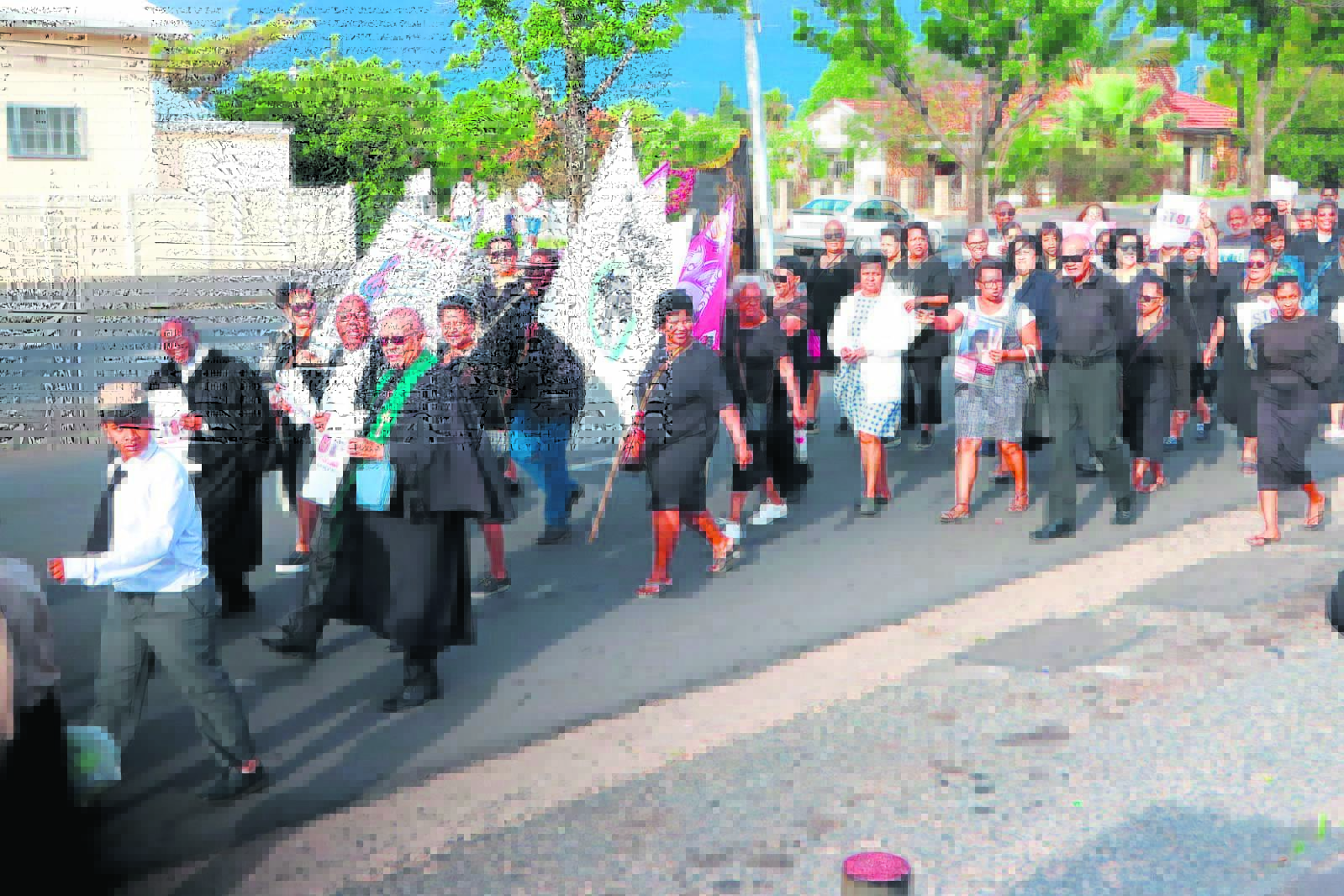 Bethel Congregational kerk in Paarl-Oos het sy jaarlikse Paasfees-kruisoptog op Goeie Vrydag gehou. Links dra ds. Danny George in die laaste tog die kruis tot in die kerk.Foto: Ernest Kilowan