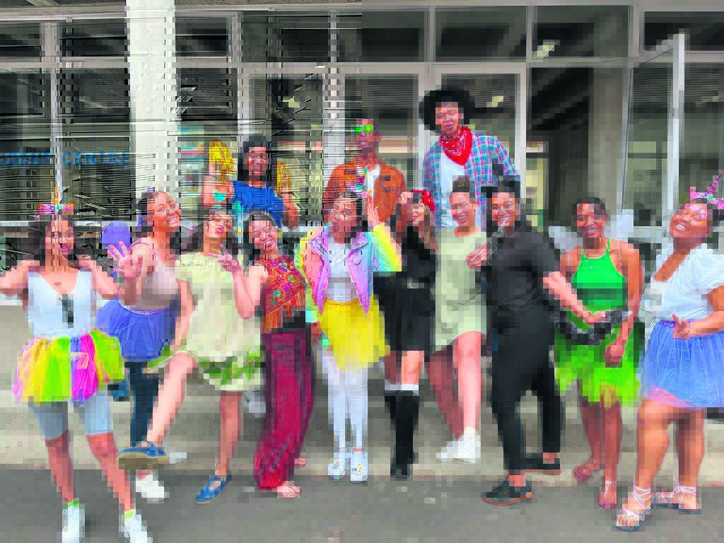 Die vierdejaar-onderwysstudente van die Kaapse Skiereiland Universiteit van Tegnologie (KSUT) se kampus in Wellington beeld met groot opgewondenheid karakters uit wat met die letters CPUT (die instelling se Engelse afkorting) begin ter viering van hul laaste 40 dae op kampus voor hul werks-avontuur begin. Foto: Ernest Kilowan