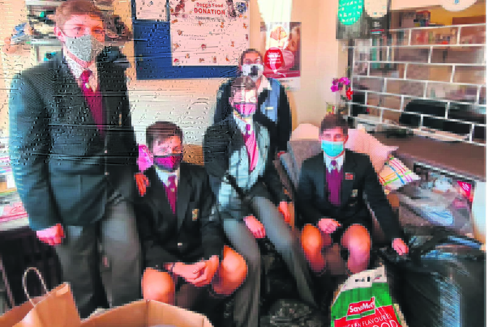 Na aanleiding van die DBV se hulpkreet verlede week in die Paarl Post het die seuns van Boland Landbou ingespring om te help en elkeen ’n ou handdoek en ou kombers geskenk vir die Paarl-DBV. Kurt Loots, Hendrik Mouton, JP Hamman en Jacques Theron oorhandig die skenkings aan Lucinda Lübbe van die DBV.Foto: Verskaf