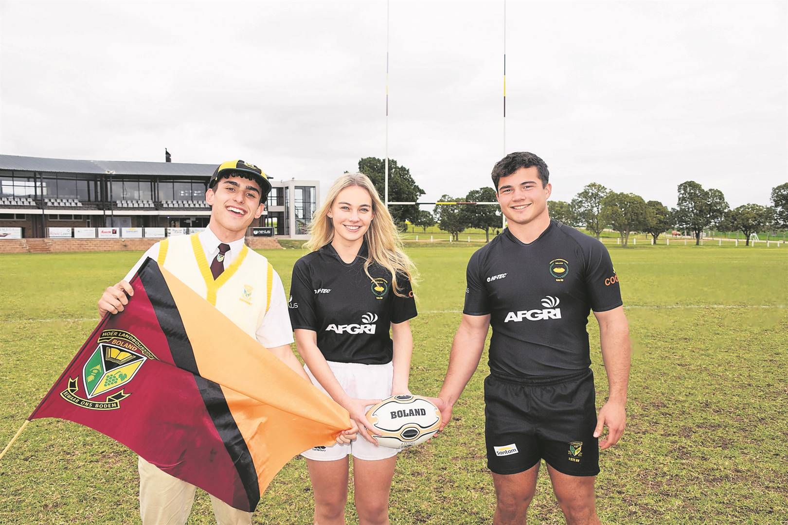 Die Hoër Landbouskool Boland speel Saterdag teen die Hoër Landbouskool Oakdale op Riversdal in wat ’n titaniese stryd behoort te wees. Al twee spanne speel vanjaar uitstekende rugby met Boland Landbou wat algeheel vyfde op die skolerugby-ranglys is. Bo pronk hul hoofdirigent Dewald Swart saam met Mej. Boland, Shelby Rosslee, en die eerstespankaptein, Albie Bester. Foto: