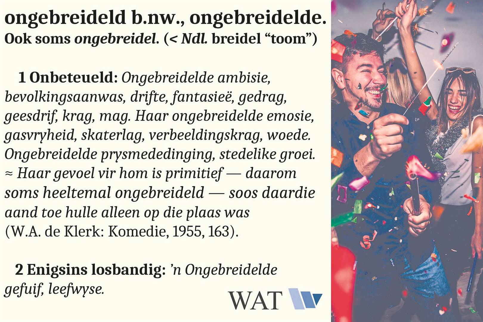 Die Woordeboek van die Afrikaanse Taal (WAT) gee ons elke week ’n kleurryke beskrywing van ongewone Afrikaanse woorde of idiomatiese uitdrukkings om jou Afrikaanse woordeskat mee op te kikker.