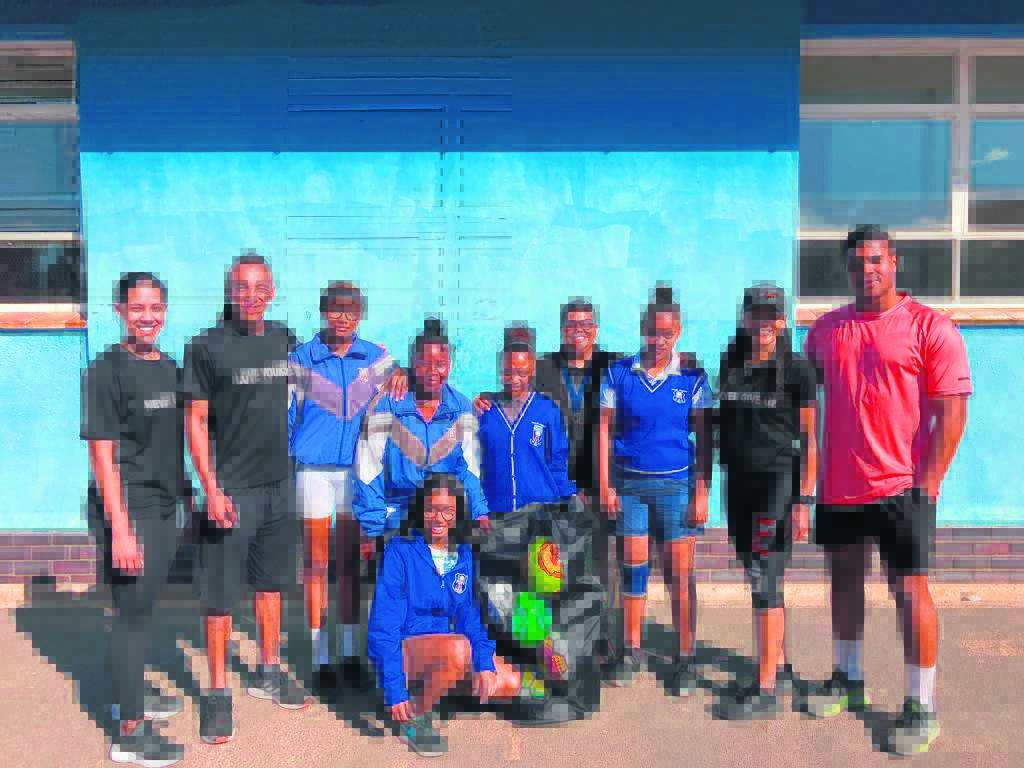 Vir Livfit-gimnasium in die Paarl is fiksheid en gesondheid ’n voorkeur en die kultuur moet van jongs af gekweek word. Dit is presies die boodskap wat hulle verlede week oorgedra het aan leerders van Paulus Joubert Sekondêr, waar hulle ’n oefensessie vir die leerders aangebied het. Hierna het hulle ook oefentoerusting in die vorm van sokkerballe en oefenbakens aan die skool geskenk. Saam met die meisies van die eerste sokkerspan (middel) is van links die span van Livfit, Cassidy Sampson en Carlton Cairncross, met Olivia Losper en Aulante Losper heel regs. Foto: