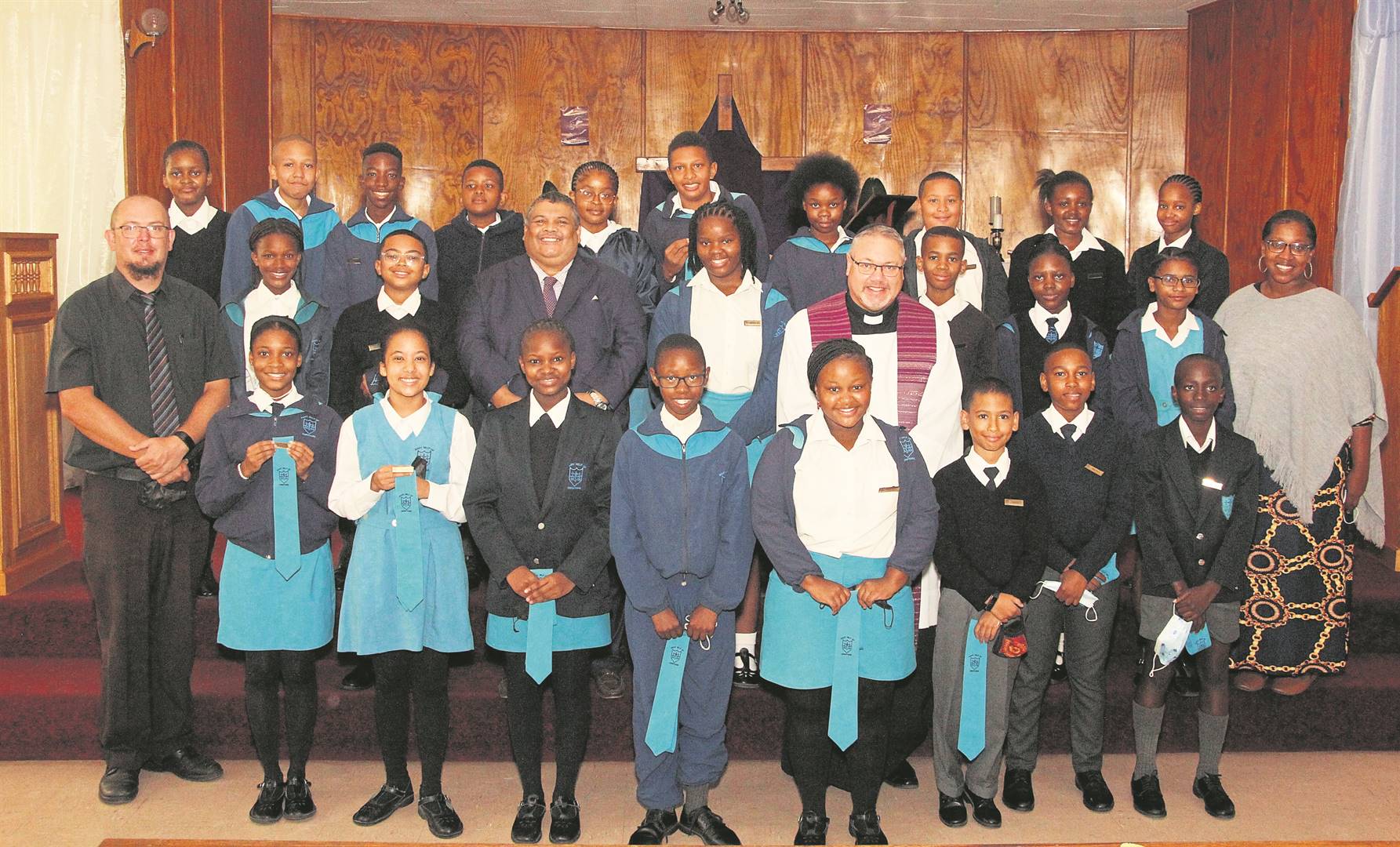 Mary Help of Christians Primary School recently selected their prefects and head leaders for this year. In front stand Esona Mhluali (headgirl) and Wa-Keem Fortuin (headboy). In the second row are Onako Swaartbooi, Emihle Bingana, Amila Bussack, Annwill Cupido and Khanya Mrozisa. At the back from left are Gabriella Rossi, Lihamandla Gwadiso. Tanashe Thom, Marli Malay and Zuqhame Hebe. Middle are Mbaleutte Kimbuala Banda, Bowale Binca, Ezentle Somaxhaka, Olicia Ndolela, Michelle Rungange and Alayone Wambi. Photo: Devidean Moses