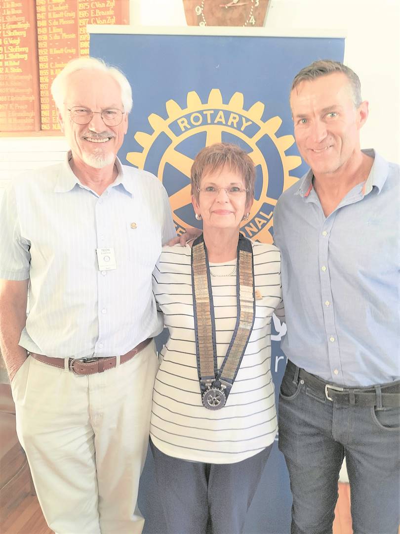 Former Springbok rugby captain Corné Krige (right) recently addressed the Paarl Rotary Club on motivation in sport and in life. He lived in Paarl for his entire school career. With him are Rotarians Deon Erasmus and Hester Visagie (president).Foto: