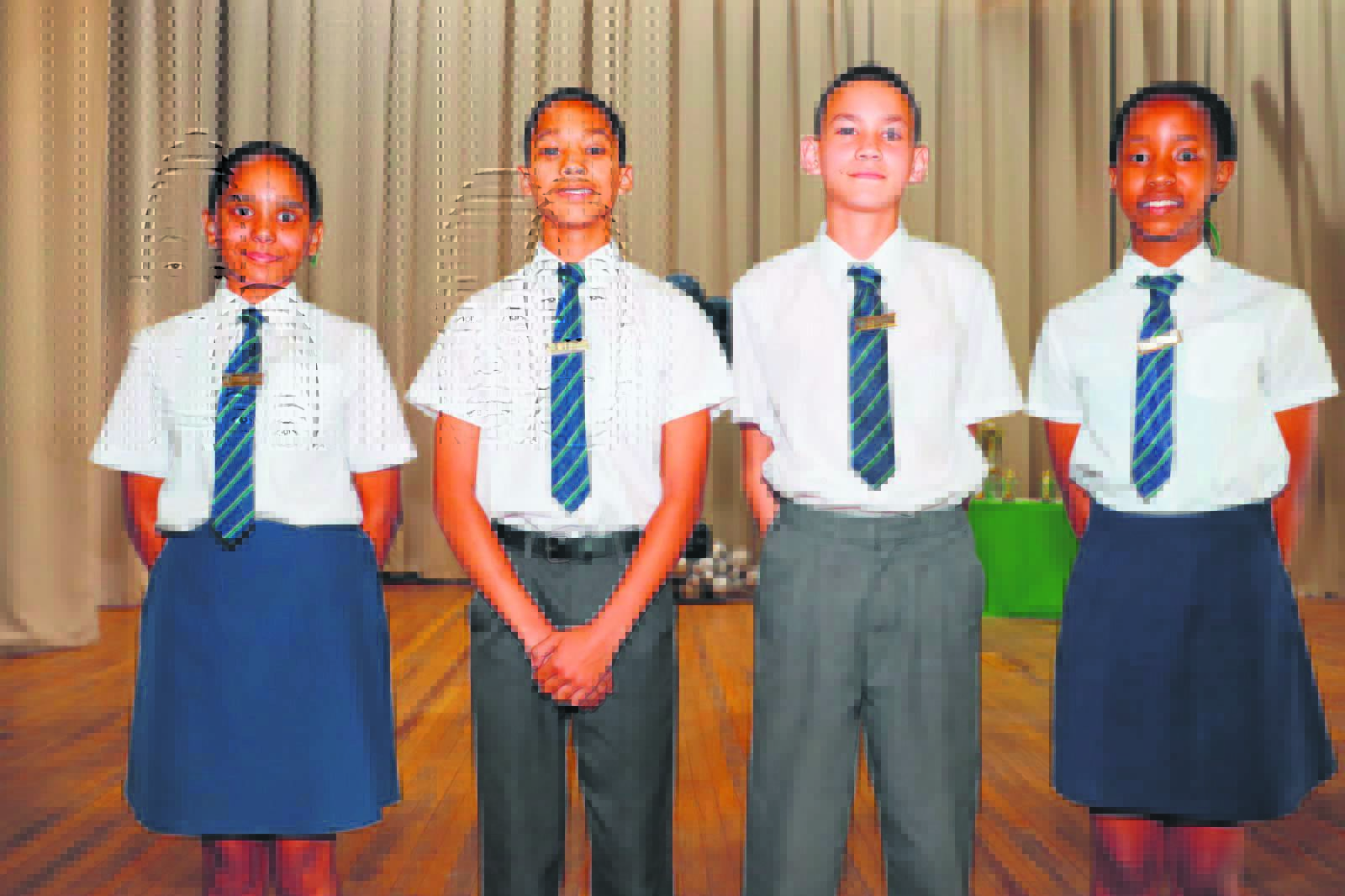 William Lloyd Primêr het onlangs sy hoofleiers vir 2024 bekendgemaak. Van links is Jaydene Jarvis (onderhoofmeisie), Nahum Paulse (onderhoofseun), Ruan Bosman (hoofseun) en Asisipho Mehlomakhulu (hoofmeisie).Foto: Ernest Kilowan