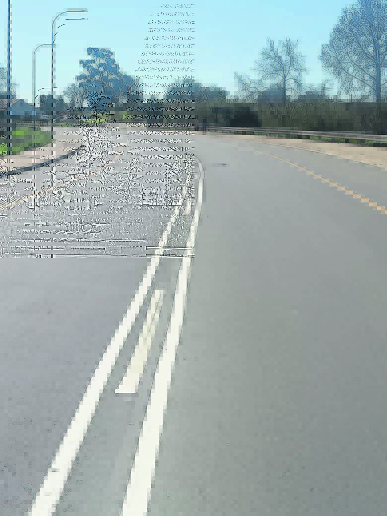 Volgens Landsberg is slegs die wit lyne in die middel van die teerpad oorgeverf, terwyl die geel lyne aan beide kante van die pad steeds kronkelrig vertoon.