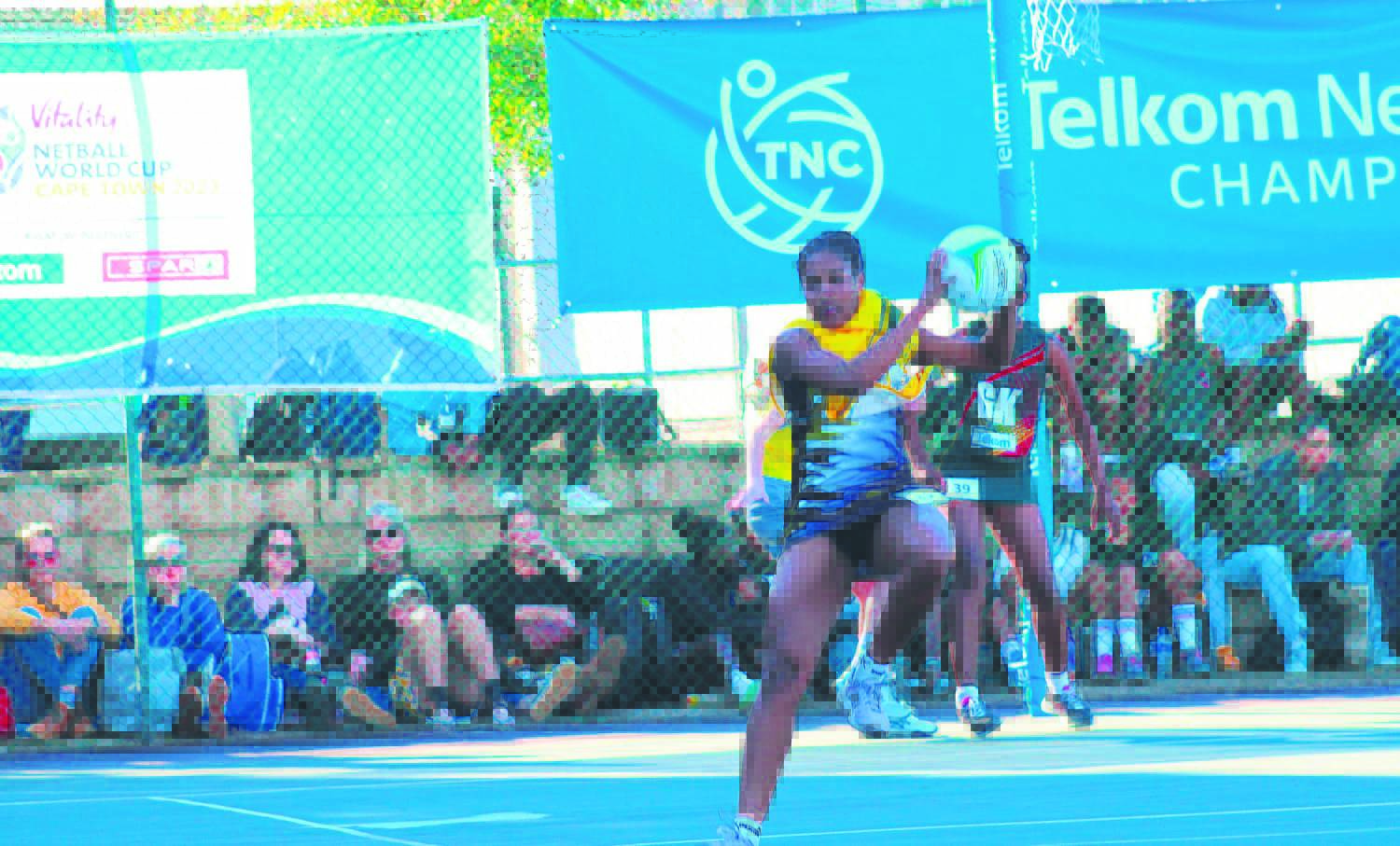 Renezia Andrews, oud-leerder van die Hoër Meisieskool Paarl, in aksie vir die Kaapse Wynland-netbalspan by die Telkom SA Netbal-kampioenskap. Sy is ná die toernooi aangewys as die algeheel beste speler en is ook in die SA o.19-netbalspan opgeneem. Die toernooi was by die Hoërskool DF Malan.Foto’s: Ernest Kilowan