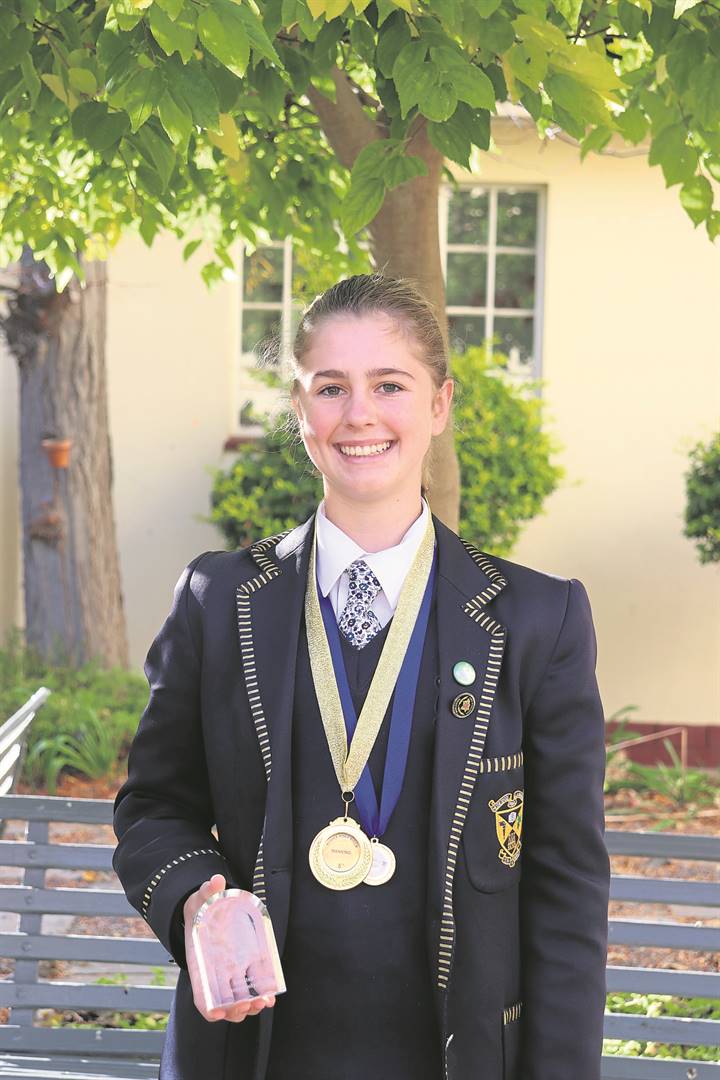 Aimee Freeman, ’n gr. 8-leerder aan die Hoër Meisieskool La Rochelle, het onlangs aan die beginner-ponieruiter-afdeling van die Pony Rider Novice kampioenskap deelgeneem. Sy het ’n eerste plek in die werkende jagter-afdeling en show hack-afdeling behaal asook ’n eerste plek in die skouperderuiter-afdeling. Freeman is ook na die Westelike Provinsie-toekenningsaand genooi waar sy die prys ontvang het vir die beste beginner-ruiter in die Wes-Kaap, asook die algeheel tweede plek as werkende ruiter. Op die toekenningsaand is Freeman ook gekies as een van die topvyf ruiters in die Wes-Kaap in die beginner-ponieruiter-afdeling. Foto: