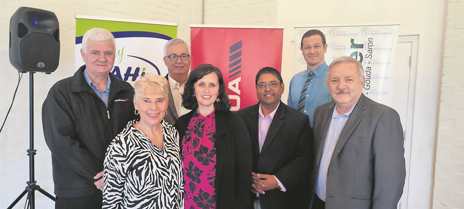 Die Drakenstein Sakekamer vier vanjaar sy 76ste bestaansjaar en het sy maandelikse sakekoffie op Vrydag 10 Maart op Laborie-landgoed in die Paarl gehou. Die gasspreker was dr. Willie Cilliers, die voorsitter van AHI (heel regs). Ander lede wat by die oggend se sake-voorlegging betrokke was, is, agter van links, Deon Boshoff van Nashua (wat die oggend geborg het ter viering van hul 50ste bestaansjaar) en Francis Nieuwoudt van die Drakenstein Sakekamer. Voor is Melchior Engelbrecht van BVSA wat ook verantwoordelik is vir Drakenstein Sakekamer se boekhouding, Marisa van Niekerk van Laborie, Naushad Khan, die nuwe bestuurder van Radio KC, en Dirk Breytenbach, voorsitter van Drakenstein Sakekamer.