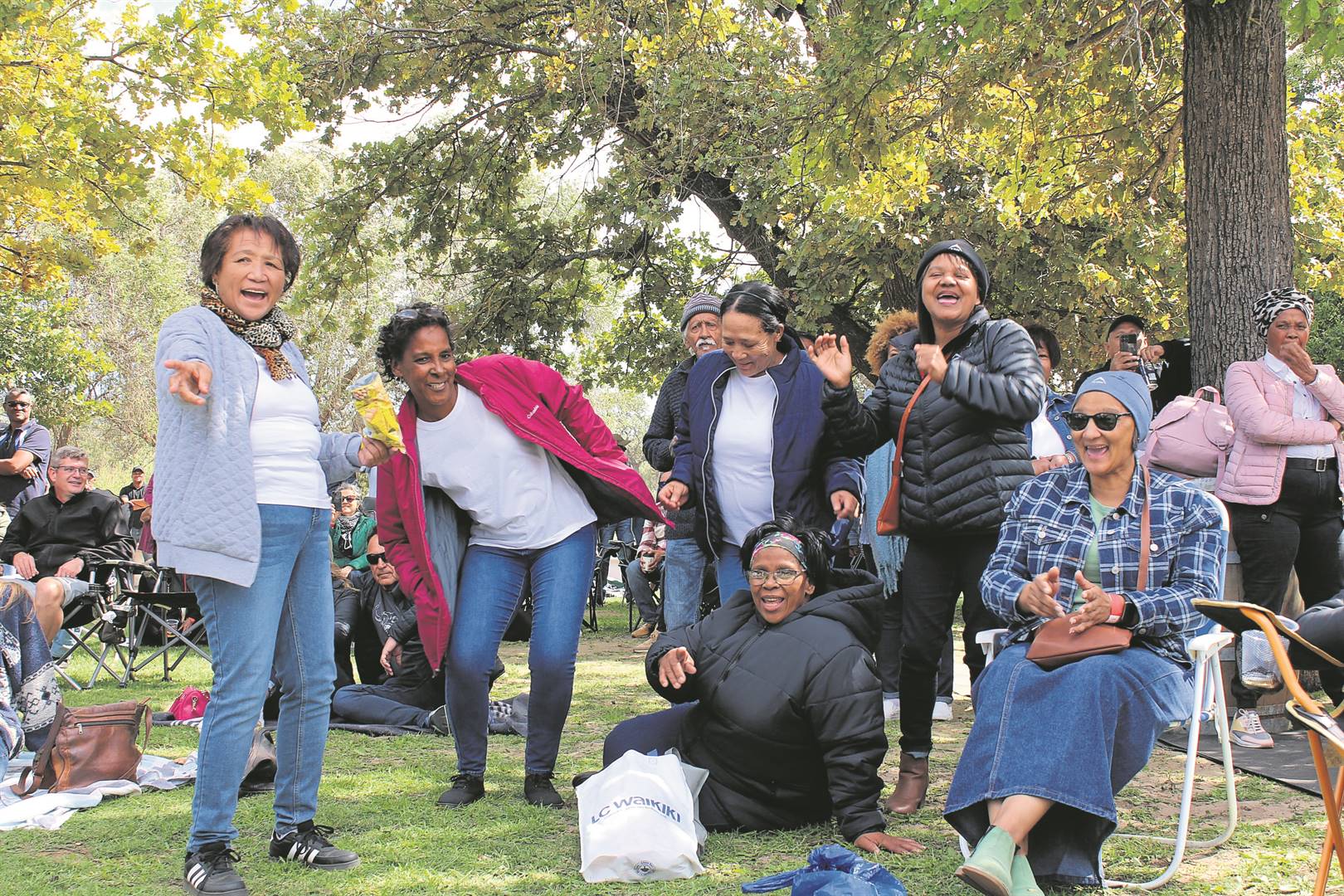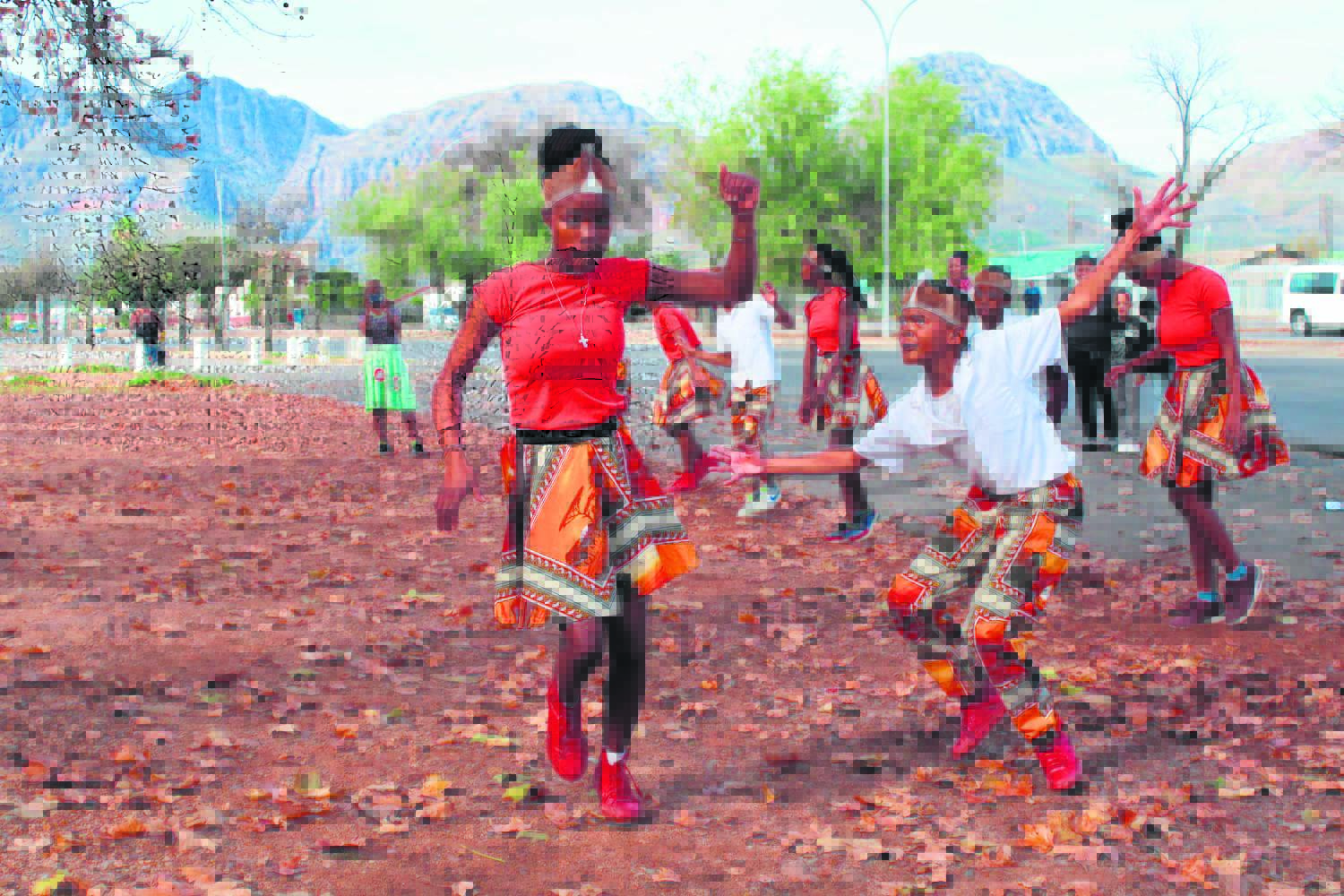 Die Cochoque-stam het op Jeugdag ’n dans-en-sing-dag by die ou polisiekantoor in Paarl-Oos gehou. Bo wys die Bosbok-vastrappers hul passies.Foto: Ernest Kilowan