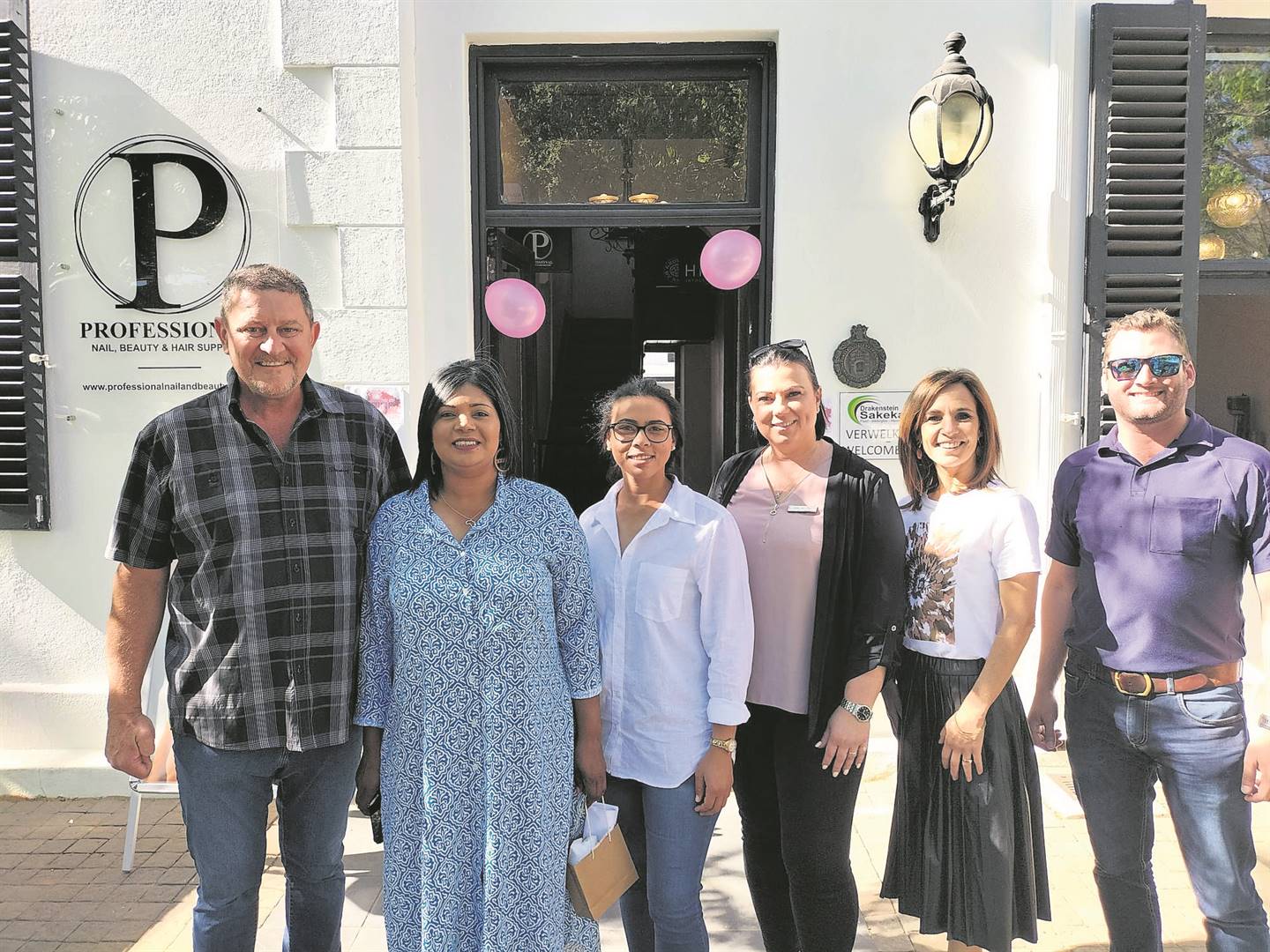 Die Drakenstein-sakekamer het sy weeklikse sakenetwerk-geleentheid Vrydag (28 Oktober) by Professional Nails and Beauty in Hoofstraat 161 gehou. Van die sakelui wat die oggend geniet het, was (van links) Brian du Plooy (Professional Nails), Lauricia van Niekerk (Drakenstein-munisipaliteit), Talia Engelbrecht (The Wine Hive), Carla-Ann Liston (Soigné), Liezl Muller (Cure Day Clinic) en George du Plessis (Vinsure).Foto: