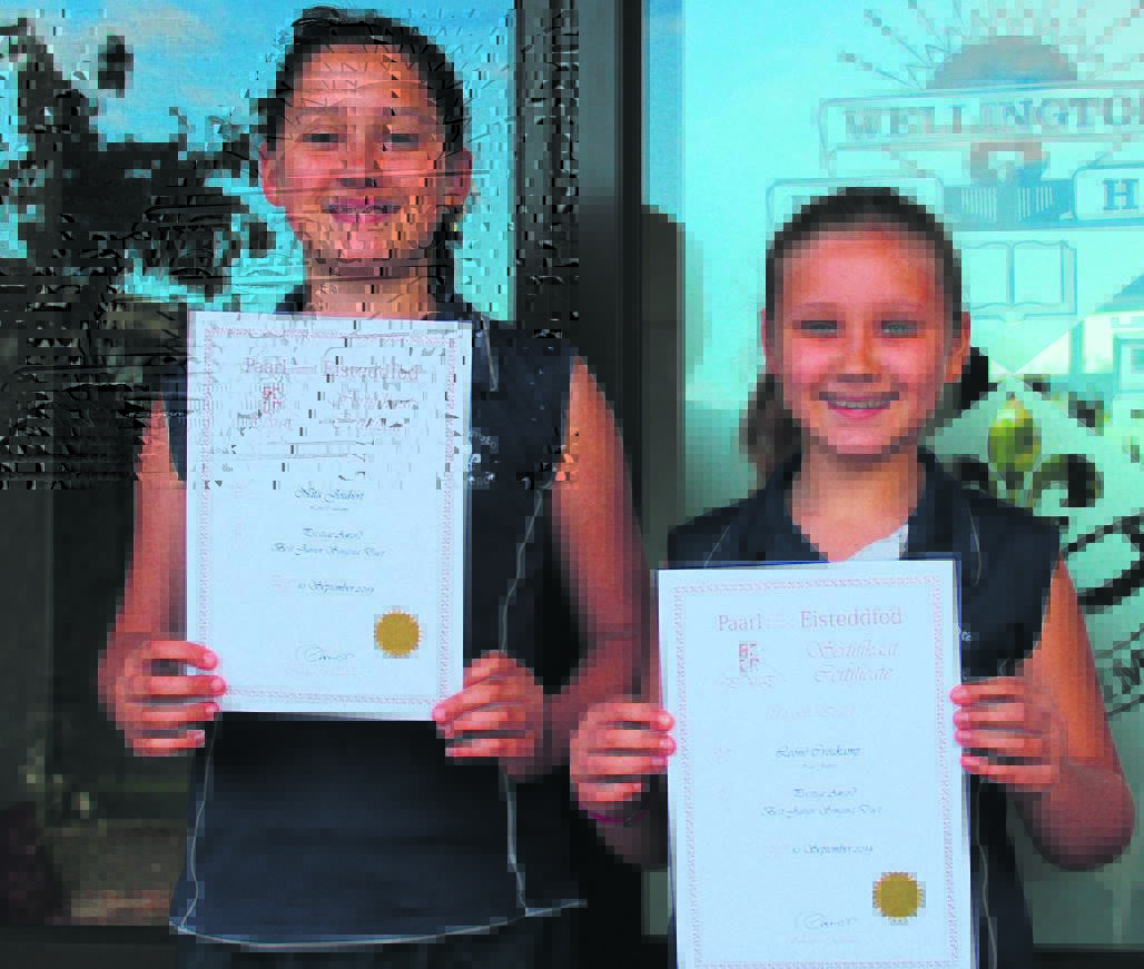 Nita Joubert en Leoné Croukamp, leerders aan Hugenote Laerskool, het die prys vir die beste junior duet by die Paarl Vallei-eisteddfod ontvang.Foto: