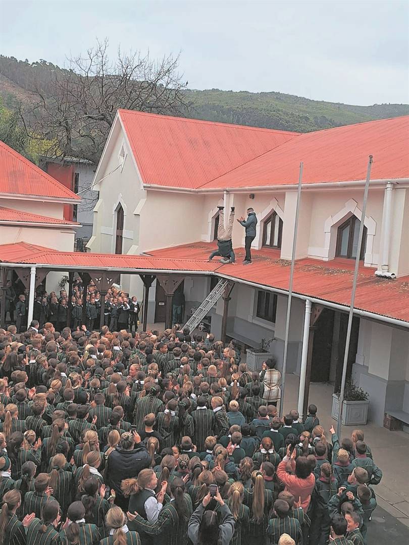 Die gees het Maandagoggend (5 Augustus) behoorlik hoog geloop by die skoolterrein van die Laerskool Paarl Gimnasium nadat Gimnasium vanjaar se interskole teen die Hoër Jongenskool Paarl en die Hoër Meisieskool Paarl gewen het. Die skoolhoof, Louis Lategan, het weer lewe geblaas in ’n destydse tradisie waar die skoolhoof op die skool se dak klim en op sy kop staan ten aanskoue van die leerders ná ’n interskole-oorwinning.