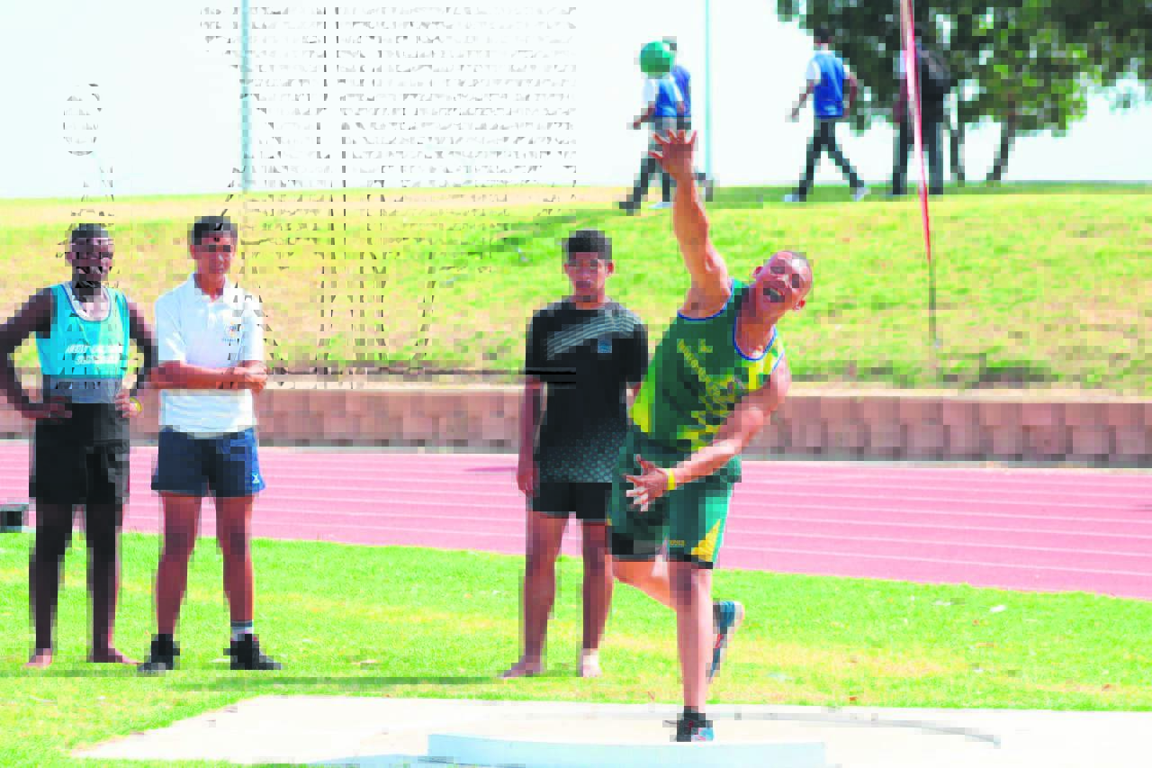 Corle Uque van die Noorder-Paarl Hoërskool in die gewigstoot.Foto’s: Ernest Killowan