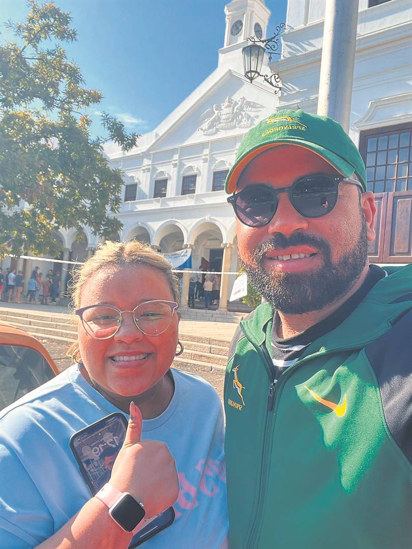 Die Paarliete Dillon en Tonya Martin was verlede week baie opgewonde om as eerste-keer-kiesers aan die nasionale verkiesing deel te neem – en dit in hul eie land, omdat hulle tans in Katar woon. Gevolglik kon hulle net aan die nasionale verkiesing deelneem. Dillon was ook trots Suid-Afrikaans in die Springbokke se groen en goud geklee. Foto:
