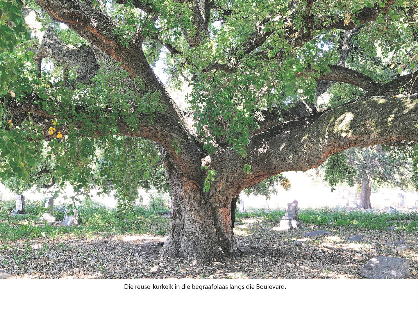 Die boom is ’n kurk-eik, en hy staan in die Toringkerk se kerkhof, nie ver van die brandweerstasie af nie. Hy staan na agter in die kerkhof, naby die rivierkant se grens, en is dus nie sigbaar van die Boulevard af nie, tensy jy spesiaal vir hom oplet. Dis nie ’n besonder hoë boom nie, maar baie wyd spreidend – sy drup-area is nagenoeg 28 meter in deursnee. In sy skaduwee en rondom hom lê die grafte van afgestorwenes uit vervloë dae.